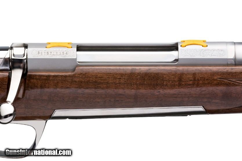 Description: BRAND NEW IN THE BOX AND READY TO SHIP! BUY IT NOW!! Manufacturer: Browning Model: X-Bolt White Gold SKU: 035235225 Caliber: .280 Remington Capacity: (1) 4 Round Detachable Barrel: 22" Stainless, Sporter Contour, Satin Finish Twist Rate: 1:9.5" Overall Length: 42.75" Stock: Grade IV/V Black Walnut, Gloss Finish Length of Pull: 13.625" Weight: 6 lbs 12 oz Sights: None, Drilled and Tapped Browning has over 50 years of experience with bolt-action high-powered rifles. Today's X-Bolt rifle inherits the strongest, most note-worthy features of its predecessors. The X-Bolt White Gold model has a Monte Carlo stock. This feature is recognized as the comb steps sharply down toward the heel of the buttstock, allowing more contact between the recoil pad of the stock and the shooter's shoulder. With this design, the recoil of the fired shell comes directly back or in-line with the stronger part of the inner shoulder, making the rifle more pleasant to shoot, especially when a long day at the range is expected. It is okay for some guns to be referred to as "beautiful" even though it is still a hard working hunting tool. The X-Bolt White Gold is beautifully adorned with a polished Stainless steel receiver that is drilled and tapped for scope mounts with Engravings both the front and rear. This rifle also has a polished Stainless steel barrel. Its stock is a gloss-finished, finely Checkered with a rosewood forend and grip cap. Polished stainless, gold engraving, gloss walnut & rosewood, Monte Carlo, detachable rotary magazine, short throw bolt, adjustable trigger, bolt-action KNOW YOUR LOCAL AND STATE LAWS!! ORDERS WILL ONLY BE ACCEPTED FROM US RESIDENTS OF THE LOWER 48 STATES, ALASKA AND HAWAII. OUR FFL CLASS DOES NOT ALLOW FOR THE EXPORT OF FIREARMS, THEREFORE WE CANNOT SHIP OUT OF THE US. IF YOU ARE INTERESTED IN PURCHASING THIS ITEM, PLEASE COMPLETE YOUR ORDER BY REFERRING TO THE "SELLER'S INFORMATION" ABOVE. SOLD |