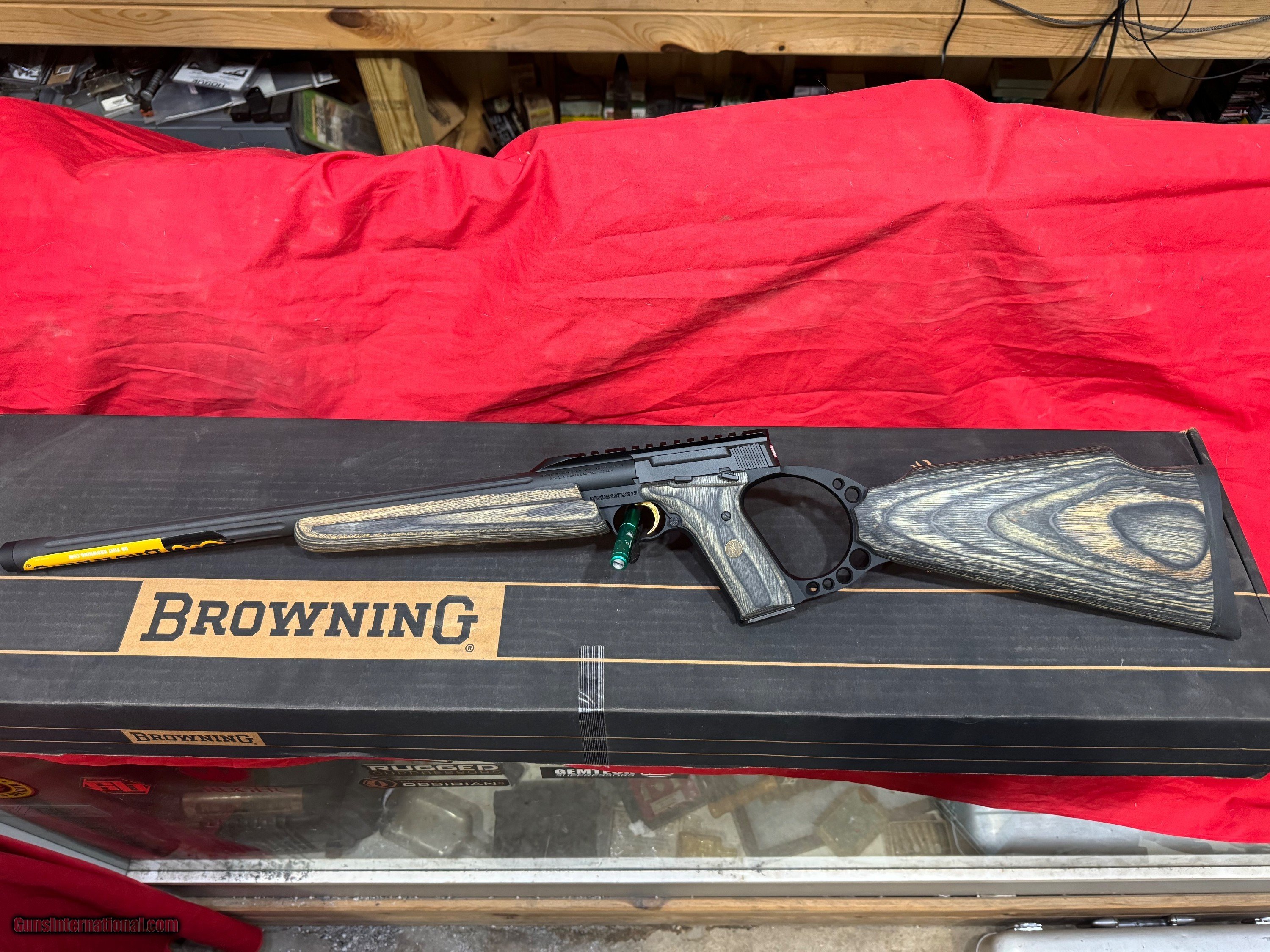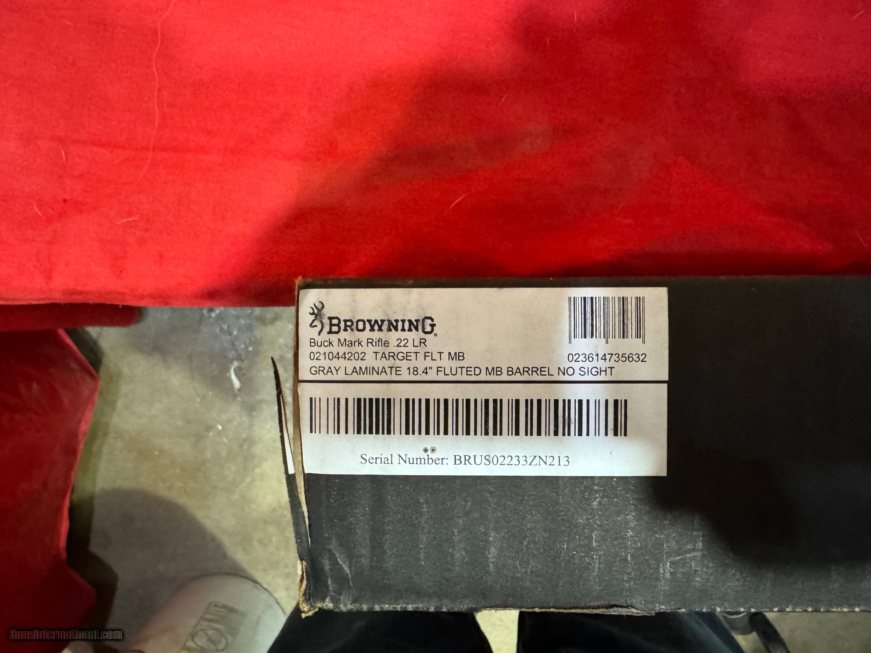 Description: New in box browning buckmark rifle. Fluted threaded barrel in grey laminate stock. Target model 60$ shipping SOLD Rifle Caliber: .22 Long Rifle Manufacturer: Browning Model: Buckmark rifle Barrel Length: 18.5 Condition: New |