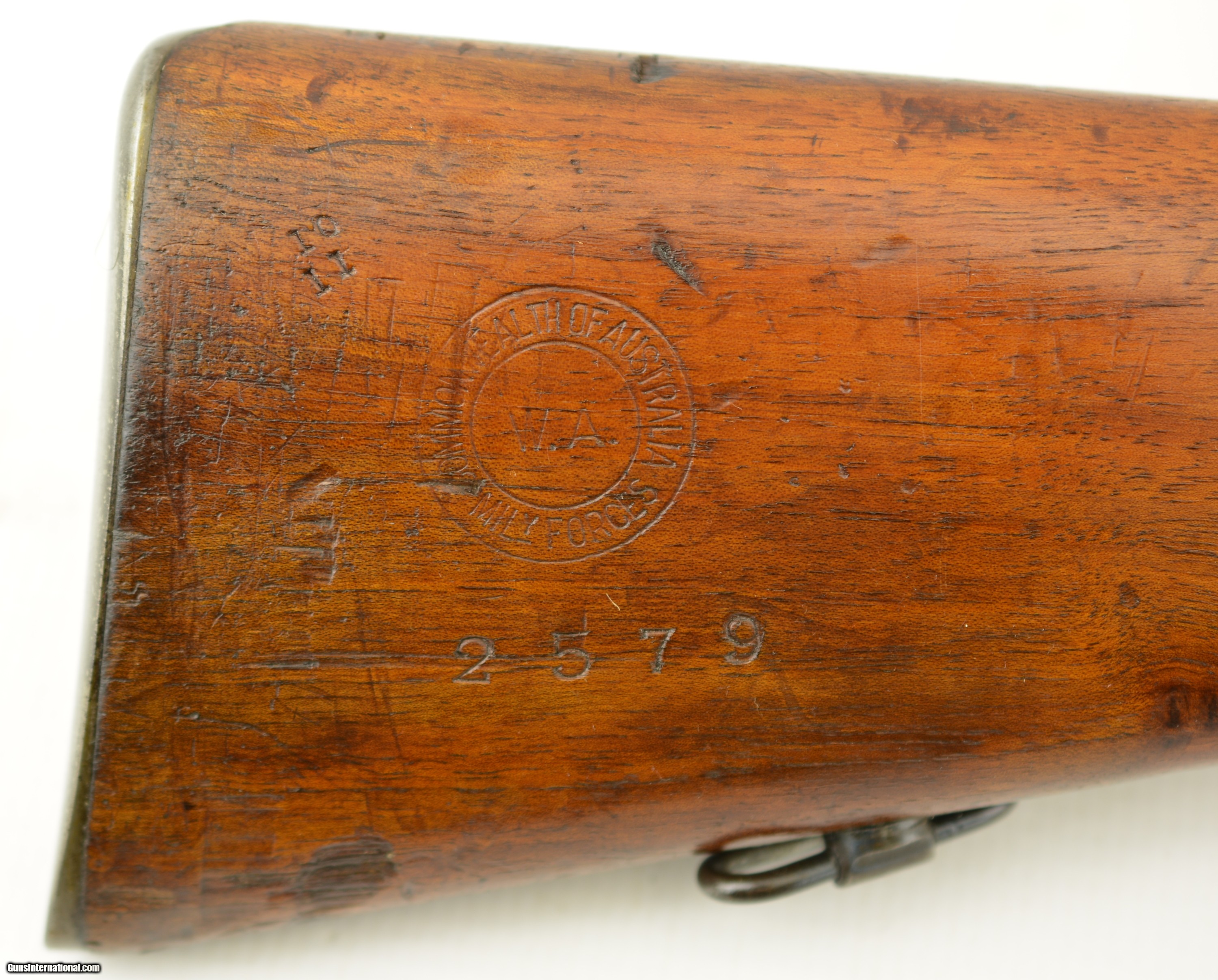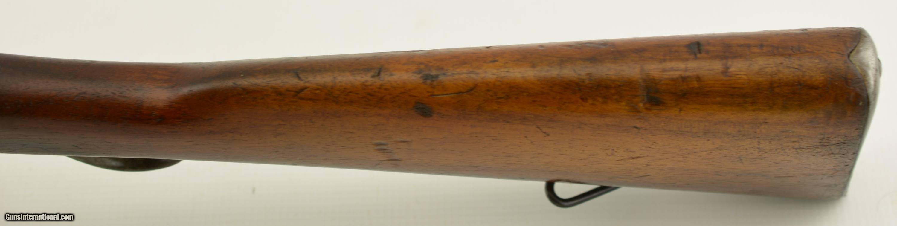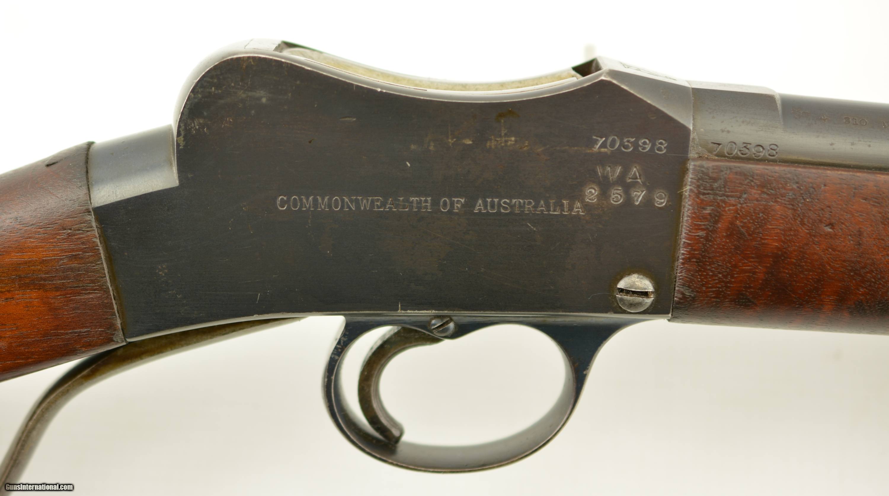 Description: Serial #70398, .310 Cadet, 25" barrel with a fine, bright bore that has some darker freckling within the grooves at the muzzle. This is a “COMMONWEALTH OF AUSTRALIA" marked rifle with kangaroo on the receiver, and retains 95-97% of the original blue finish with silvering along the high and exposed edges, as well as some small areas of mild surface freckling at the rear “hump" of the “WA" stamped receiver. The walnut forend and buttstock have numerous minor handling marks and light blemishes in the original military oil finish, along with some minor impact marks around the forend pin. A still sharp and legible W.A. (Western Australia) cartouche is present on the right side of the buttstock. The mechanism is tight and fully functional, however the buttstock is slightly loose. This is a fine example of an Australian marked Martini Cadet rifle, and would make a great addition to any collection. FFL or C&R SOLD Curio/Relic: Yes Manufacturer: BSA Model: Martini Serial Number: 70398 Caliber Info: .310 Gauge Info: .310 |