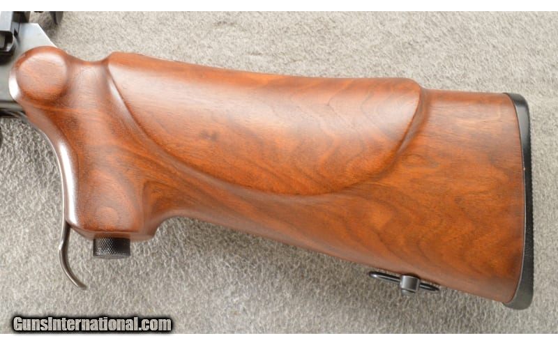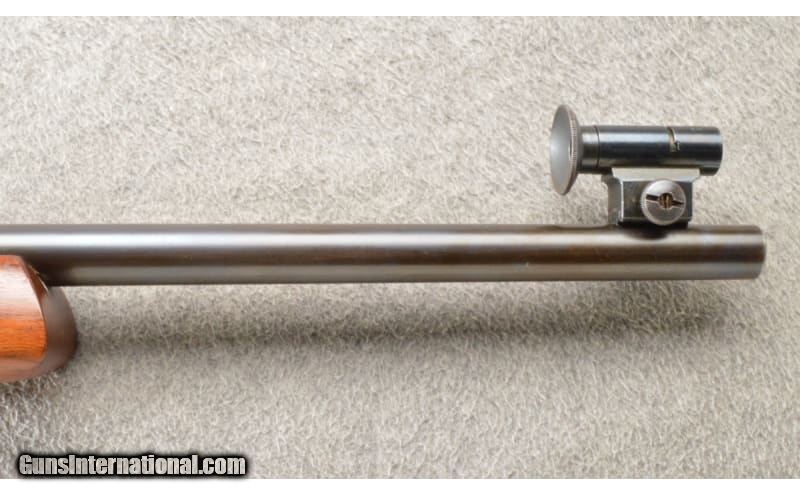 Description: BSA Martini-International MK II competition rifle chambered in .22 LR with a 26" barrel. The right side of the frame is marked "B.S.A. MARTINI-INTERNATIONAL MKII" and on the left side "MADE IN ENGLAND". The barrel is marked "THE BIRMINGHAM SMALL ARMS Co. Ltd ENGLAND" and the right rear side is stamped with the standard British firing proofs. Parker Hale target rear peep sight, Olympic style adjustable target front sight with interchangeable apertures, The forend is smooth walnut with an adjustment bar and pistol grip stock. The extra sight apertures are stored in the pistol grip. Stock is stamped 58. .22 Long Rifle SOLD Chambers: Single shot. Metal Condition: Minor finish wear in with areas of plum with dulling and high edge wear. Wood Condition: Excellent with maybe a couple light marks. Bore Condition: Bright bore with very good rifling. Barrels: 26" barrel. Triggers: Single. Stock Dimensions: LOP 13 1/4". Fore End: Smooth. Butt Pad: Hard rubber. Weight: 11 lbs Sights: Parker Hale aperture sights. Item Location: Owatonna, MN |