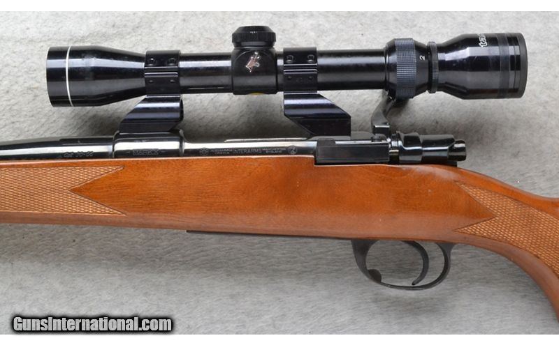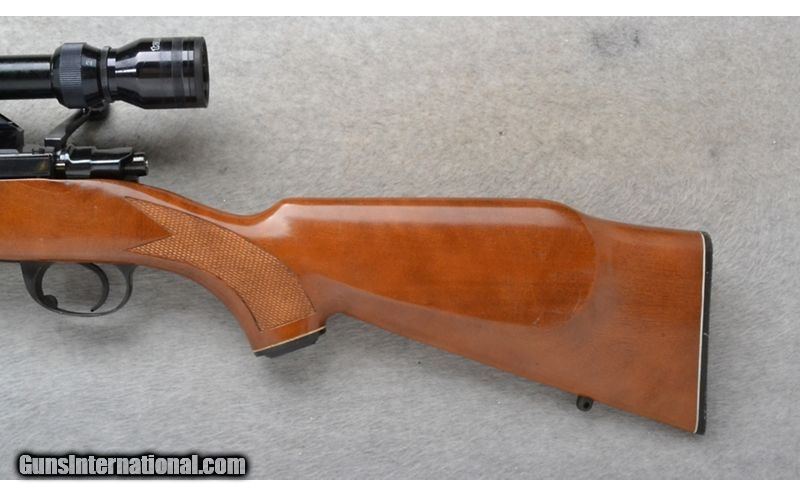 Description: This Birmingham Arm Model Mark X is a right hand bolt action rifle in .30-06 Sprg. Cal. It has a 24 inch barrel. A hooded front blade front sight and an adjustable notch rear sight. It is outfitted with a tasco Scope. The butt stock is a checkered grip hardwood pistol grip. The forearm is a checkered grip hardwood. .30-06 Springfield SOLD Chambers: Internal magazine with a hinged floor plate. Metal Condition: Excellent. Wood Condition: Good with light handling marks. Bore Condition: Excellent. Barrels: 24 inch. Stock Dimensions: LOP 14 inches. Fore End: Checkered grip hardwood. Butt Pad: Interarms checkered black plate. Weight: 8 lb. 5 oz. Sights: Hooded raised blade front. Adjustable notch middle. tasco 2-7x32 Scope. Item Location: Richfield, WI |