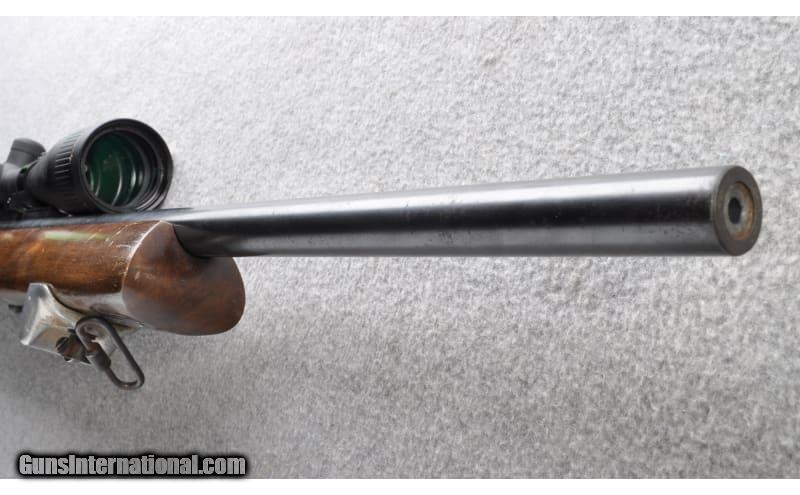 Description: The B.S.A. Martini-international Mark II Match Rifle was introduced about 1954. This rifle is called the "Light Pattern" with 26" barrel. These were some of the most accurate .22 rimfire rifles and considered the finest Match Rifles in the world. Using specially selected high grade steel, each barrel was hand lapped to produce a uniform internal finish. Manufactured between 1953 and 1961 with approximately 3,390 units made. .22 Long Rifle SOLD Chambers: .22 Long Rifle in a single shot falling block target rifle Metal Condition: "Good, with a few light spots of surface pitting and a bit of rust at the muzzle Wood Condition: "Good, a fair amount of field marks and nice color of the French walnut. Bore Condition: Bright with sharp rifling Barrels: 26" Heavy contour 6 groove Triggers: Single adjustable Stock Dimensions: 13 5/8" LOP Fore End: "Beavertail with bottom rail, handstop/sling swivel and left hand rear sling swivel mount. Butt Pad: BSA serrated buttplate Weight: 12 Lbs. 4 Oz. Sights: "No sights, fitted with a Simmons Whitetail Expedition 6-18x44 AO scope Item Location: Grand Junction, CO |