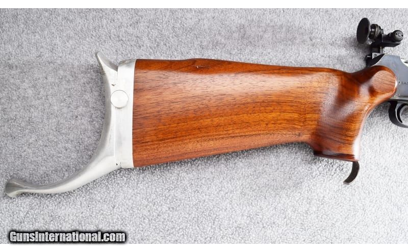 Description: The BSA International MK II was manufactured between 1953 and 1959 and remains in excellent overall condition. Wood is solid and shows only gentle use for 60 plus years. BSA has its beginnings as early as 1689 under King William III in Birmingham England. In 1861 the Birmingham Small Arms Trade Association was formed into the Birmingham Small Arms Company Limited. Using the "Martini" action, one of the finest actions in the world for building precision target rifles and used predominantly by BSA. It is said that this rifle in its original form is preferred by target rifleman. This model MK II sported an improved trigger, ejectors and stock design. Blue is very worn on barrel and receiver shows some light wear on bottom and high contact places. Target scope block and bottom target rail remain in place. Very nice classic target gun! Excellent bore! .22 Long Rifle SOLD Metal Condition: Very Good Wood Condition: Very Good Bore Condition: Excellent Barrels: 28" Heavy Barrel Triggers: Factory Stock Dimensions: 13 7/8" LOP Fore End: Uncheckered Walnut with Rosewood Pistol Grip Cap and Monte Carlo Cheekpiece - Uncheckered Walnut Forend with Target Rail Butt Pad: Schutzen Style Adjustable Butt Plate Weight: 13 3/4 lb Sights: Front Globe Sight - Parker Hale Fully Adjustable Rear Peep Item Location: Wheeling |