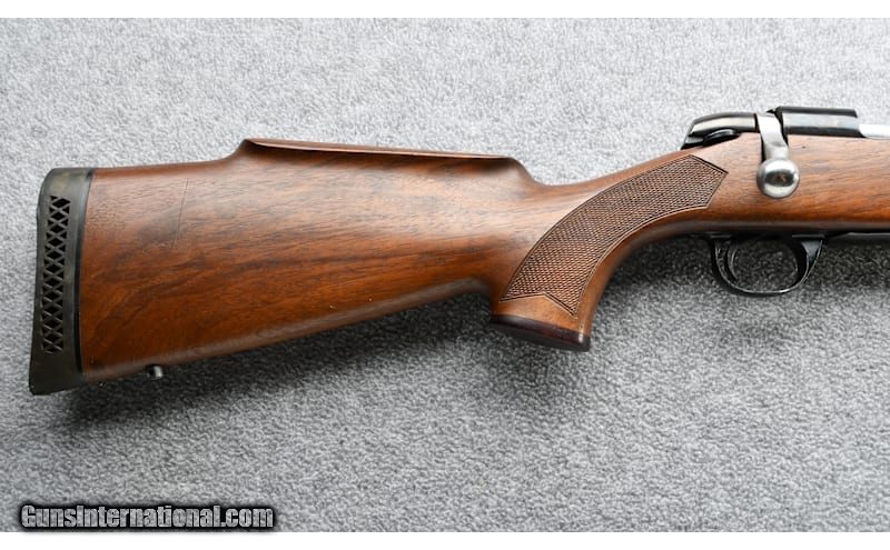 Description: BSA CF2 in very good condition. Monte Carlo stock, two position safety, Williams "V" notch adjustable rear sight. .243 Winchester SOLD Chambers: .243 Winchester Metal Condition: Very good Wood Condition: Very good Bore Condition: Very good Barrels: 24 Stock Dimensions: 14 Fore End: Checkered with rose wood cap Butt Pad: Vented BSA rubber recoil pad Weight: 8 lbs 4 oz Sights: "Williams adjustable rear, front blade with gold bead Item Location: Grand Junction, CO |