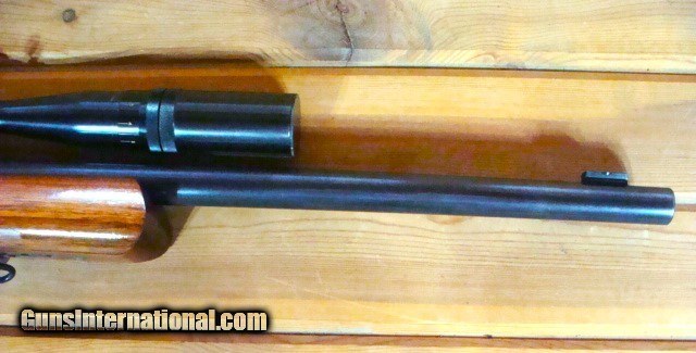 Description: From a mid-west estate sale, a BSA Martini International model 22 cal. with a 28" heavy barrel (see photos). At the sale they said this gun was made in the 1950's, was bought new, outfitted with the scope and only fired a few times before being locked away for decades. The blued steel shows no wear or blemish. The gloss finish of the wood of the stock has a few dents, dings and handlining marks of a 70 year old rifle and it has the original, undamaged BSA butt plate. The action is tight and crisp with an excellent trigger and a new looking bore (I have not cleaned or taken this rifle apart). I can find no fault with this gun and appears to be unaltered and exactly as it was when Dwight Eisenhower was President (see photos). The J Unertl 10 power target scope has straight cross hairs, clear ottics and metal, screw on, lens covers. The scope and mounts appear to have been installed when the gun was new (see photos). At the sale they said this rifle came standard with the the target blocks mounted on the heavy barrel. As well as the scope mount blocks the rifle come with an mounting block at the muzzle for a globe front sight and a side mount receiver block for mounting a peep sight. They had no other information about this rifle at the sale and I have no way to authenticate its history; therefore, I am offering this Beautiful Rifle with a 100% satisfaction guarantee. If it fails to live up to your expectations in any way return it for a full and speedy refund including your return shipping (see my feedback).We trade guns. No reserve. ****Payment Notice**** Business check, Certified check or money order only, personal checks with prior approval. If you are asked to send payment via electronic transfer or to any other address than listed on the invoice you are being scammed by hackers. My US Postal box is a secure address . ****Please Read**** I do not recommend firing any weapon until it has been thoroughly examined by a certified gunsmith. Sorry no California sales. Ship to FFL or C&R holder only. Shipping $45.00 which includes a tracking number emailed to you. Insurance is optional. Missouri residents pay 8.45% sales tax where applicable. SOLD |
