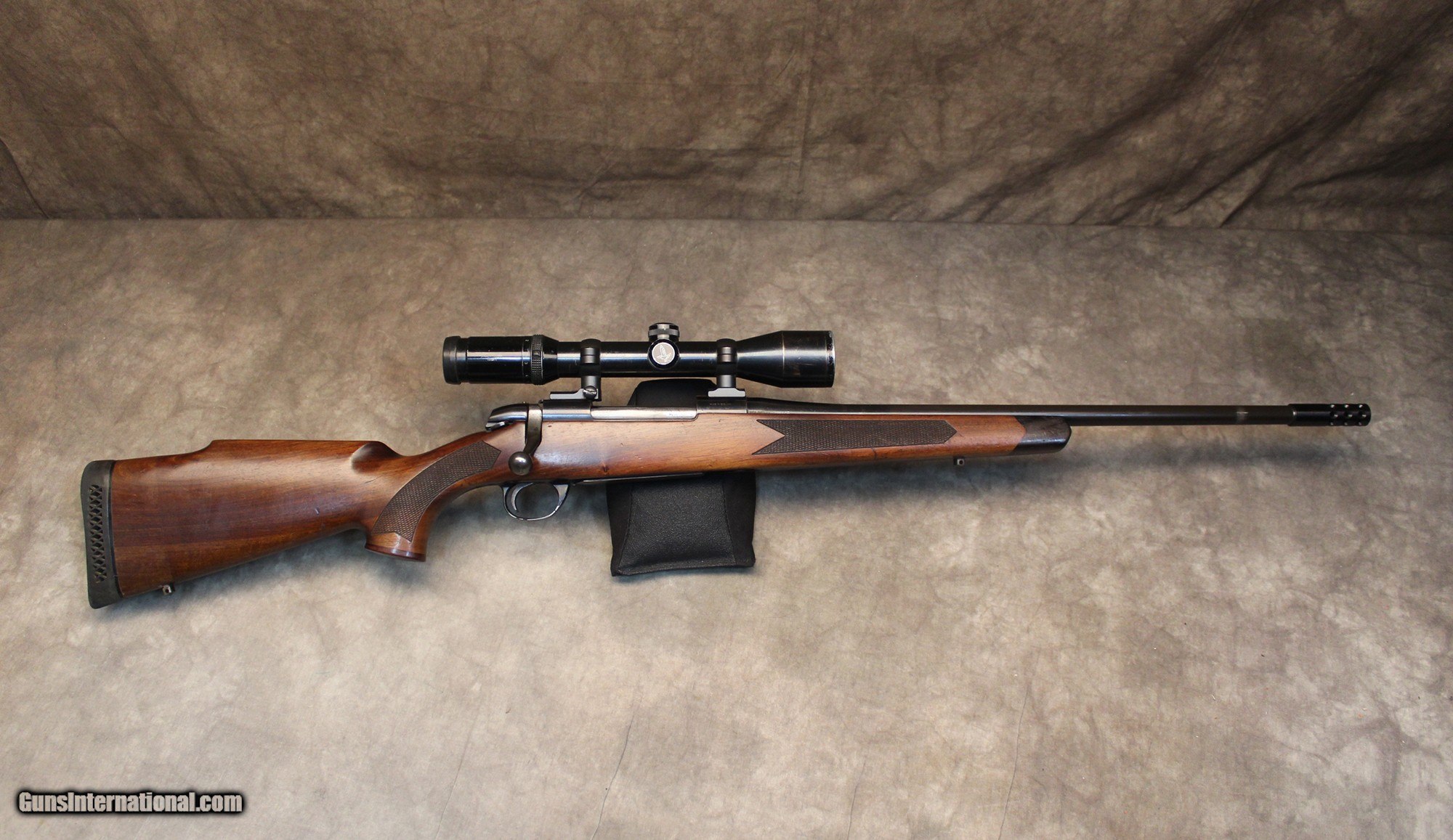 Description: This BSA rifle is in good condition. The wood has a few small dents and dings. The metal work has a few blemishes. A Swarovski Habicht 1.5x6 scope is installed, it has their #4 reticle. It has a threaded barrel and has a muzzle break attached. It should make a nice light varminter/ pest control rifle. .222 Remington SOLD Chambers: .222 Remington Metal Condition: Good Wood Condition: Good Bore Condition: Good Barrels: 20 Butt Pad: Black rubber recoil pad Weight: 9 LBS Sights: Swarovski Habicht 1.5x6 scope Item Location: Columbia, MO |