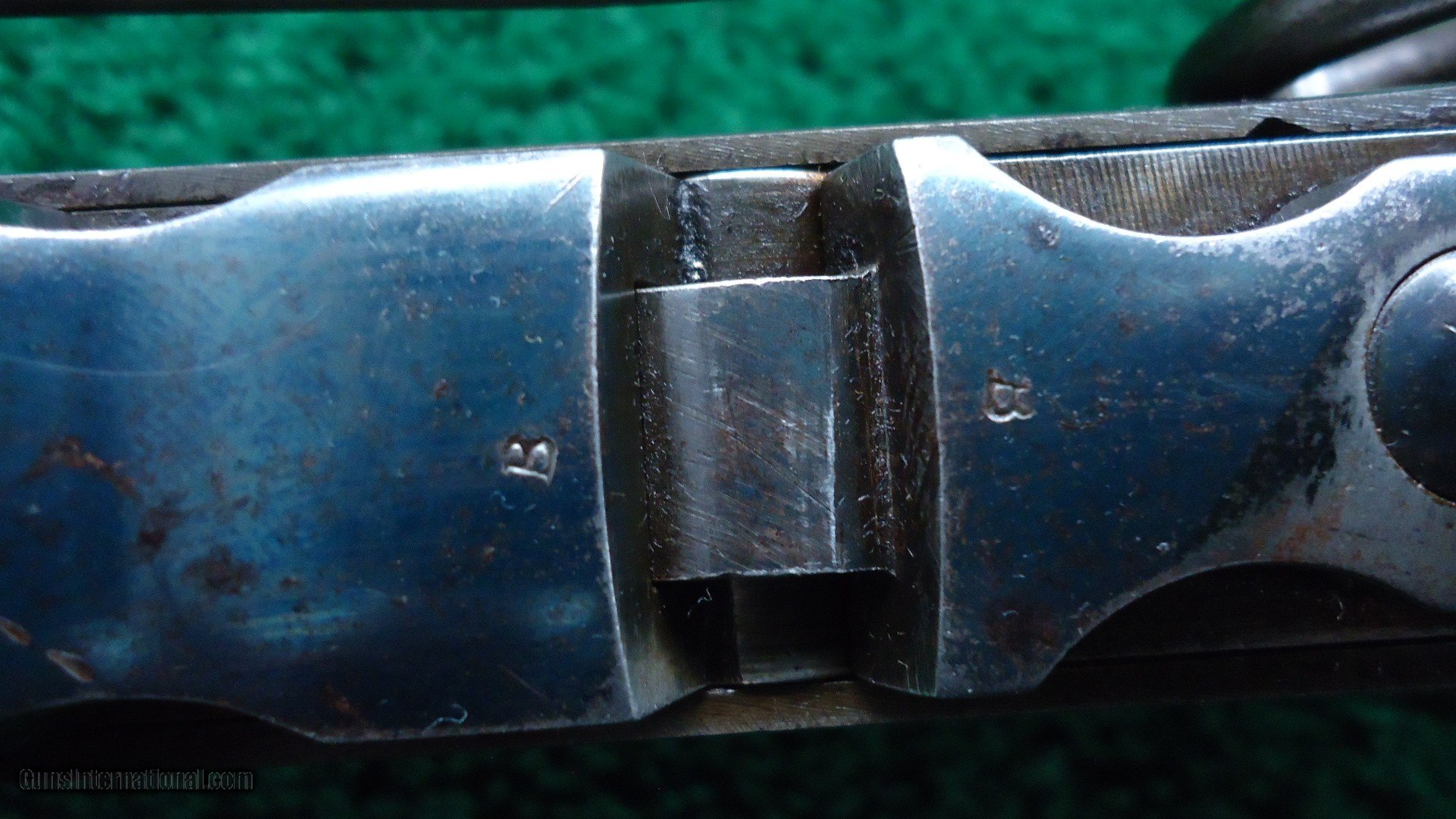 Description: Wood has a light coat of varnish added. Good cartouches showing. Correct style buttplate. 21 inch round barrel retains about 90% thinning blue. Receiver has most dimming case colors remaining. Loading lever has most original blue. Fine inspector markings. Good mechanics. A beautiful example of a Burnside Civil War carbine! Leroy Merz Antique Firearms specializes in antique and vintage Winchesters and other fine American firearms. Since 1965 Mr. Merz has taken part in the world of firearms and has been a contributor to many well known reference books. We have hundreds of additional guns in every price range at our home online. Search for Merz Antiques in google. SOLD Antique: Yes |