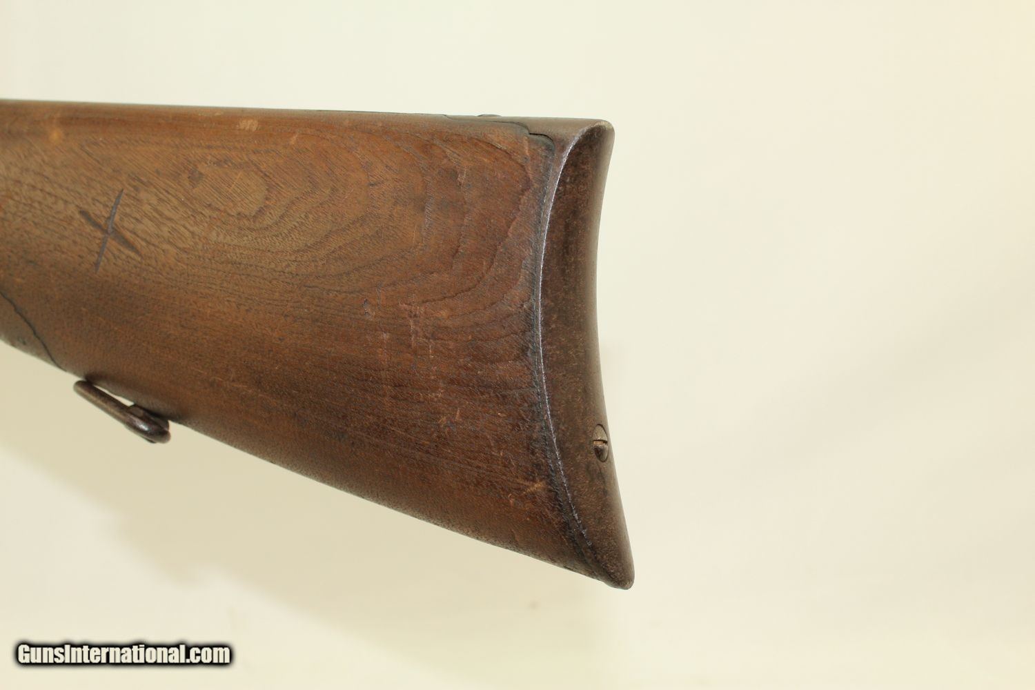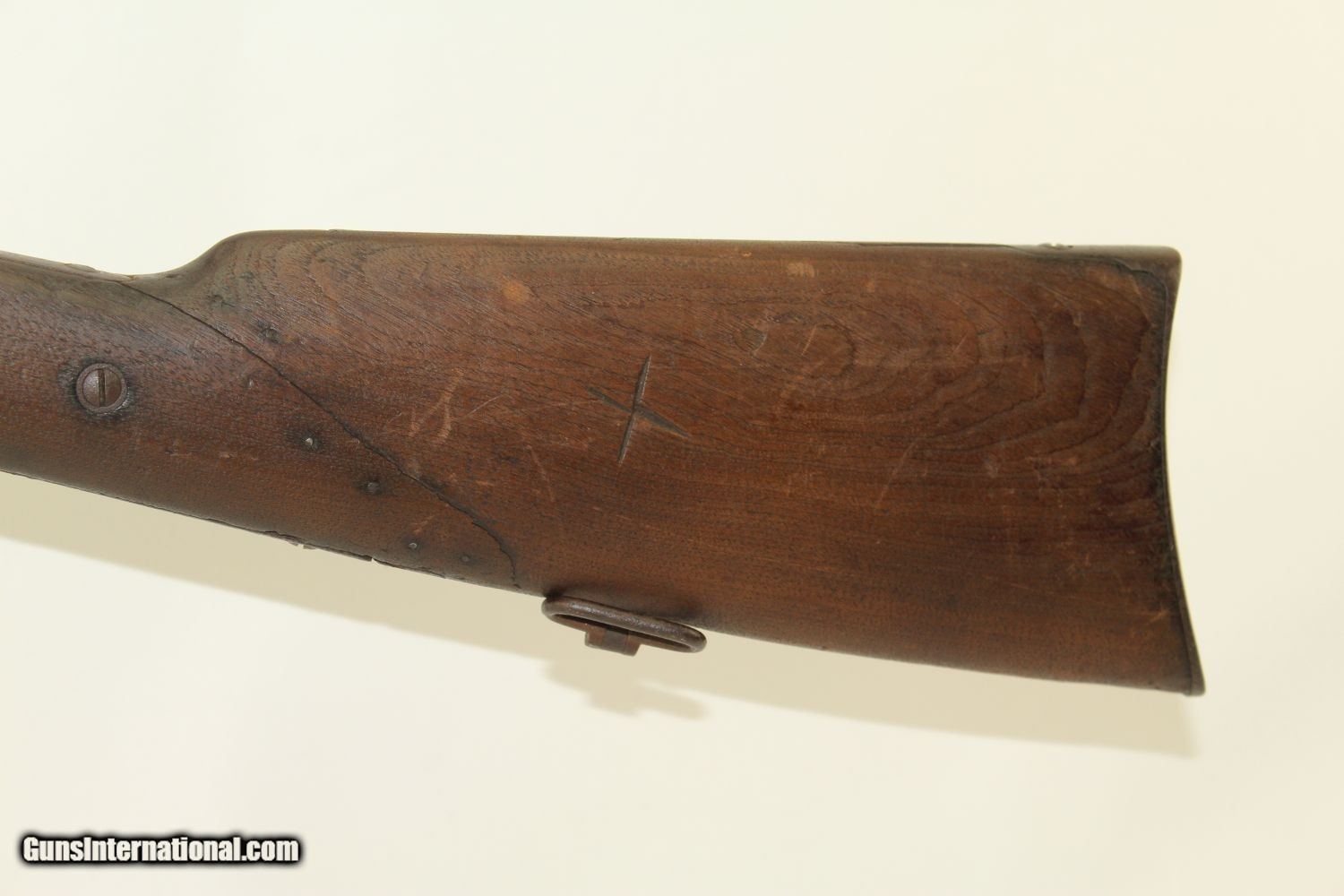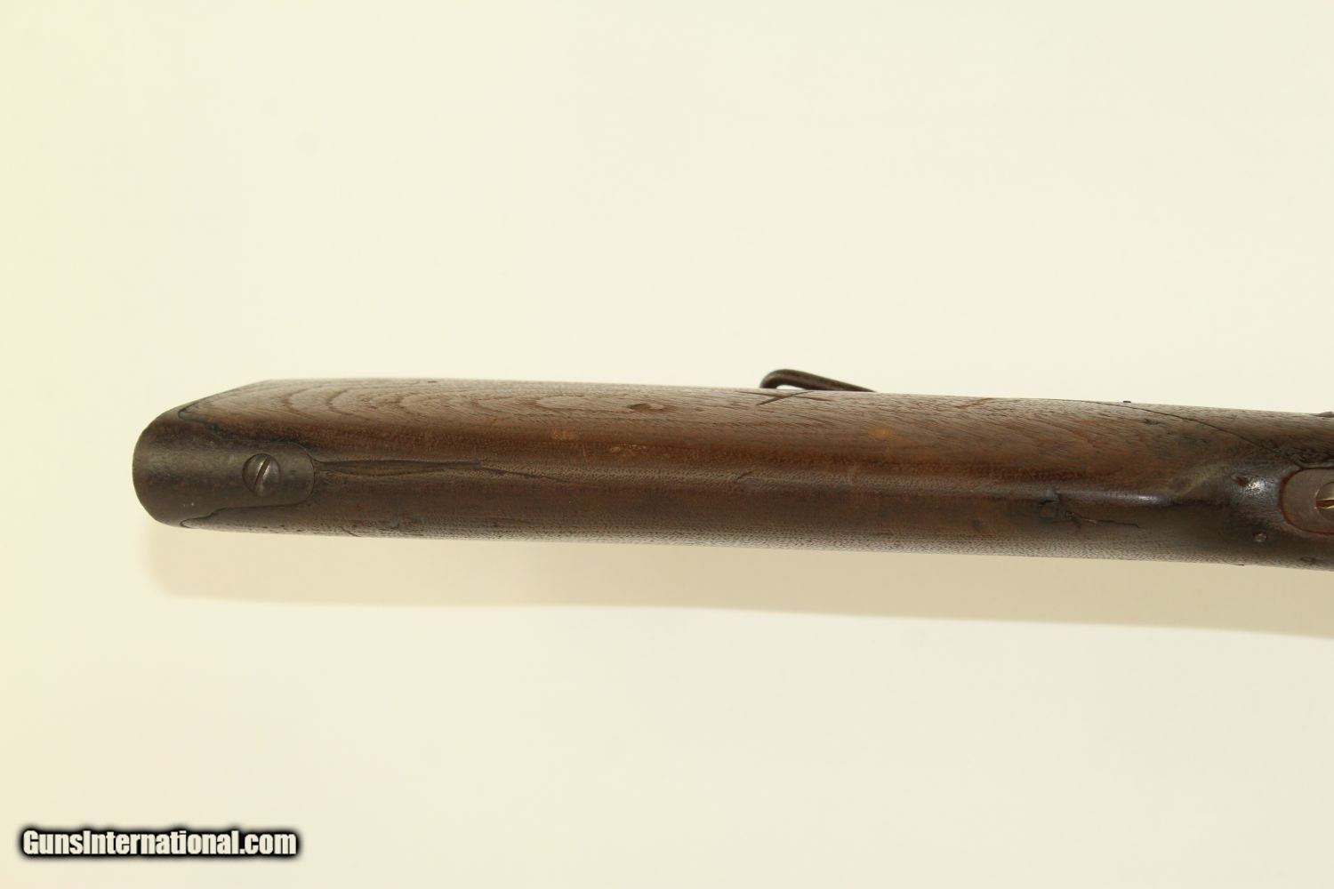 Description: Antique CIVIL WAR BURNSIDE M1864 5th Model Carbine Antique Saddle Ring Carbine Made in Providence, RI Here we present an antique Burnside Model 1864, also known as the Burnside “5th” Model Carbine, made circa 1863 to 1865 by the Burnside Rifle Company in Providence, Rhode Island. General Ambrose Burnside was an official in the company before the war, but was not involved in wartime development of the rifle. It employed a cone shaped metal cartridge for use in the percussion firing system. Though historical literature refers to a Model 1863, none are marked with this date and collectors have generally referred to this model as the 5th model. Approximately 43,000 carbines of this model were produced, with the serial numbers running from 1 through 43,000. There were 19,000 that featured the “Model 1864” stamped on the top of the breech, with later production reverting back to use the 1856 patent date. Standard features include an iron buttplate, a single iron barrel band, a saddle riding bar and ring on the left side, a strap hook on the bottom of the butt, a double hinged iron loading lever which also serves as a trigger guard, a hinged sight, and a chamber tapered for the unique Burnside metal cartridge with a priming hole in the bottom for percussion. The following Confederate cavalries known to have used these carbines were the 2 NC, 8 TX, 6 7 11 & 12 VA. Cavalries from IL, IN, IA, KY, ME, MI, MO, NJ, NY, OH, & PA were known to have used them as well. The overall condition is fair. The iron parts show much use and exposure to the elements. The markings are mostly legible. The walnut stock likewise shows use and weathering. There is a “T” carved on one side and “X” on the other. The bore is dark and rough. The action is functional. Own the original! This is a legitimate antique and not a reproduction. Barrel is 21 inches. Caliber: .54 Overall condition as seen in photos. Very Fast. Very Safe. FREE SHIPPING WORLDWIDE. Delivered directly to your door by express mail! Guaranteed AUTHENTIC & Includes CERTIFICATE OF AUTHENTICITY. ancestryguns $1275 #190109 SOLD Antique: Yes |