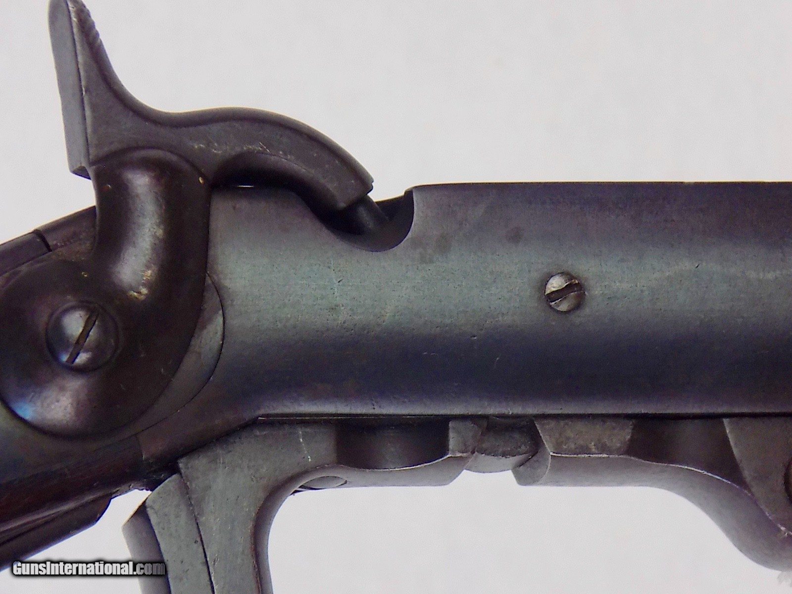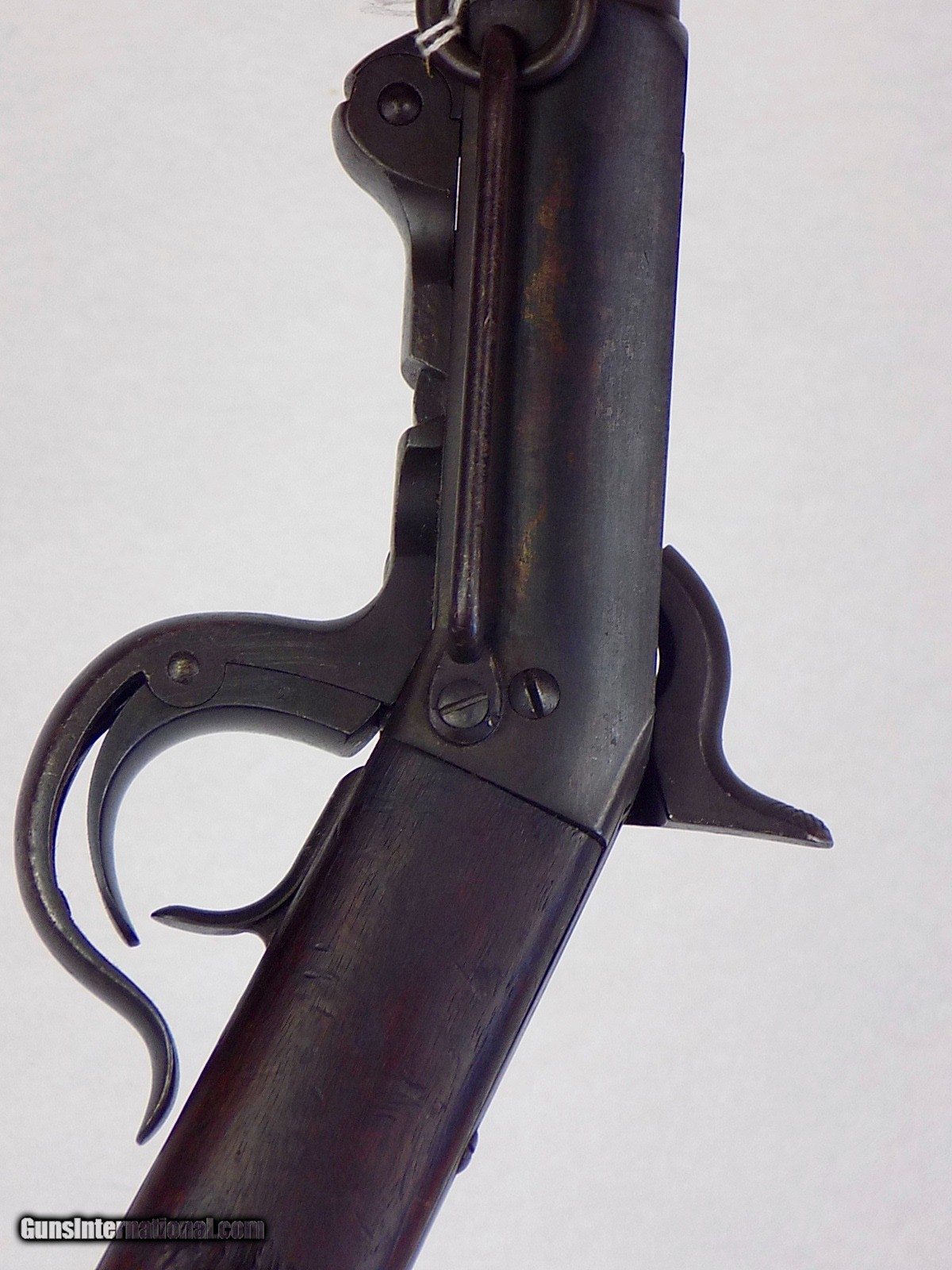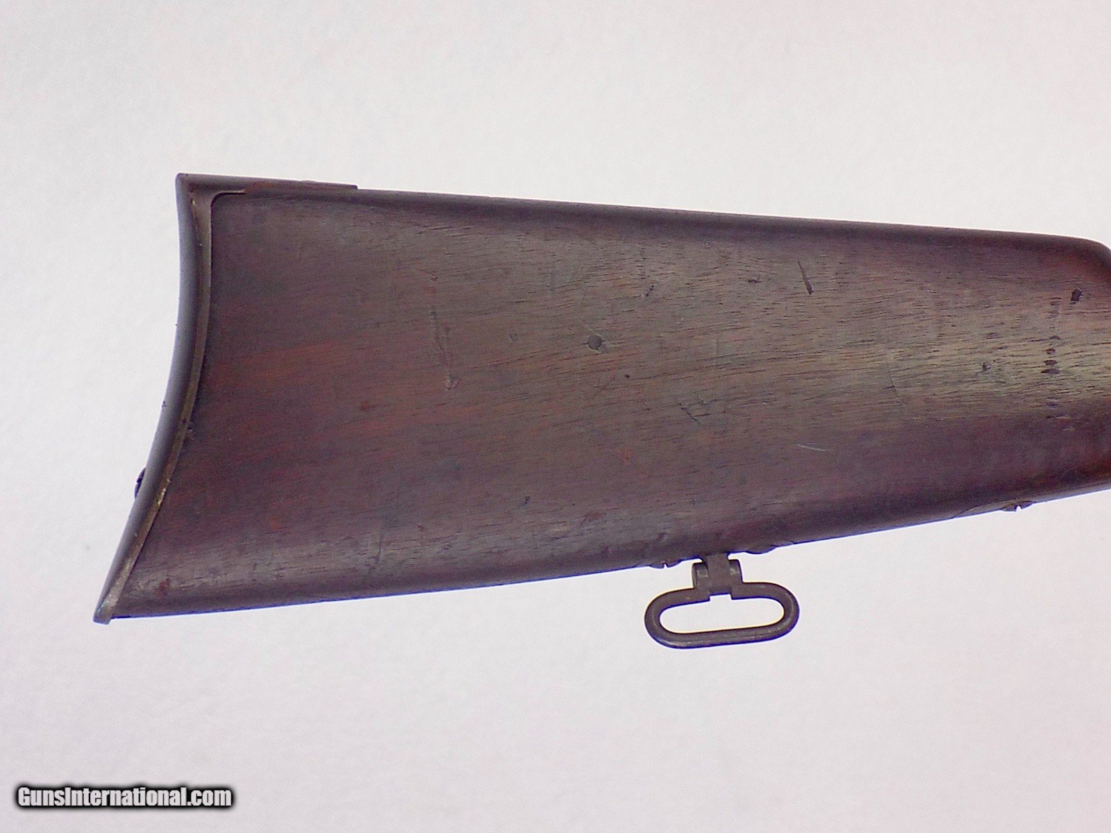 Description: #1182A BURNSIDE 5TH MODEL CIVIL WAR SRC, 54 cal., SN 143XX, 21” bbl., original sights, saddle ring, sling swivel, 75% blue on metal, fair bore, good wood. $1500 SOLD Antique: Yes Rifle Caliber: .54 |
