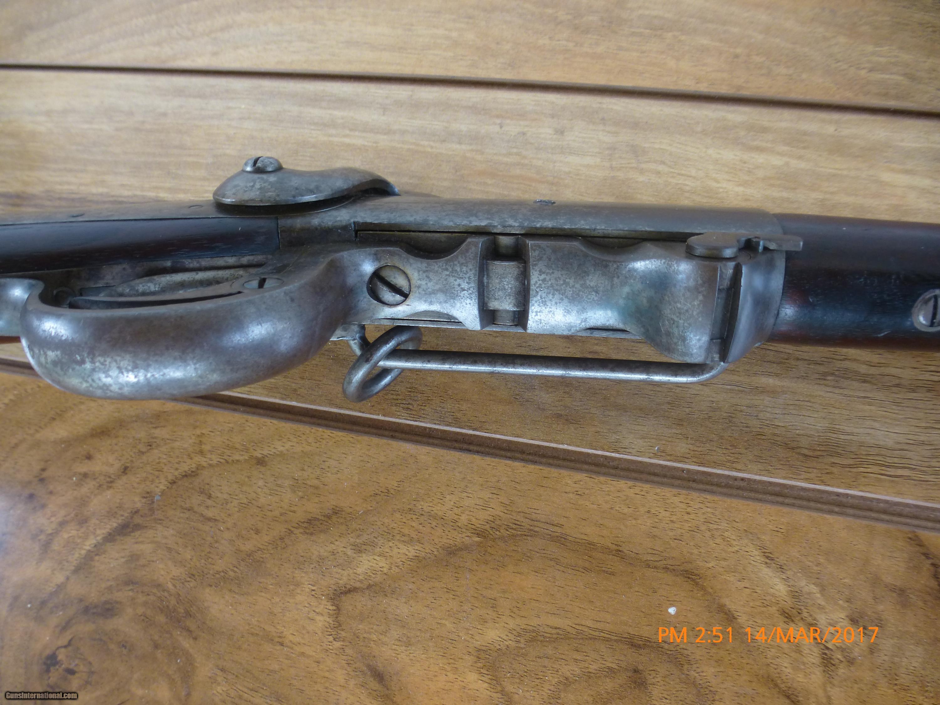 Description: BURNSIDE CARBINE 17-6 17-6 BURNSIDE CARBINE Fifth Model: the lock plate marked: Burnside Rifle Company Providence, RI. Receiver marked “BURNSIDE PATENT MODEL 1864”. Condition: Overall very good/Fine condition gun with some very light speckling and brown patina on bbl, frame is clean with brown patina, has not been cleaned or buffed, lock is clean, bore is excellent with virtually all of the rifling bright shiny with no corrosion, works fine, wood is fine with nice varnish finish no dents, dings, serial #6712, matching. Nice for a collector or shooter. Have your gunsmith check it out. (17-6) $1,495.00 Made by the Burnside Rifle Co. Manufactured c. 1857-1865. 54 Caliber; percussion breechloader. The Burnside arms are of special collector interest due to the identity of their designer, Ambrose E. Burnside, Treasurer of Bristol Firearms Co. (Financial difficulties caused him to sell his interest June, 1859) and famous Union general during the Civil War. The cartridge is also unusual, having a tapered case either of copper, or of tampered foil. I take Visa/MasterCard, add 3%. Allow two weeks for all checks, whether bank, personal or certified to clear. It is also possible to wire funds to my account for instant credit for a $20.00 wire charge. 3 day- no questions asked return period for refund of price paid for gun. (Not including shipping or credit card charges.) All sales subject to prior sale at other sites or from shop. Call or email with any questions or for more pictures. Guns are antique and should not be fired without examination by gunsmith. $50 shipping for long guns, $30 for hand guns to lower 48 states, about $50-$75 to most European countries and $70-$80 to Australia for antique handguns, carbines $75-$125. We can generally get insurance if you want through shipper but coverage is very limited. Notify me if you want it. You can send 20% down- balance in 90 days for installment payment plan. No refunds on installment plans. I have shipped to Norway (long gun w/fragile stock) see feedback, England (Winchester1876, Rem. Dbl. Derr.), Northern Ireland, Austria, France, Netherlands ,(Holland), Australia, Denmark, and Sweden. Email if you are not U.S. for estimated shipping costs, payment methods, etc. I am always buying and trading for antique and collectible guns, Indian items, rare ammo, etc. Email what you have got for sale or trade. SOLD Antique: Yes Serial Number: 6712 |