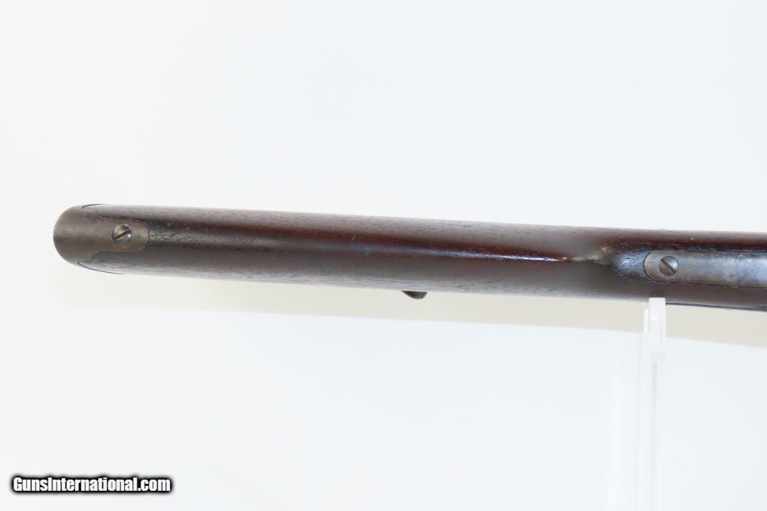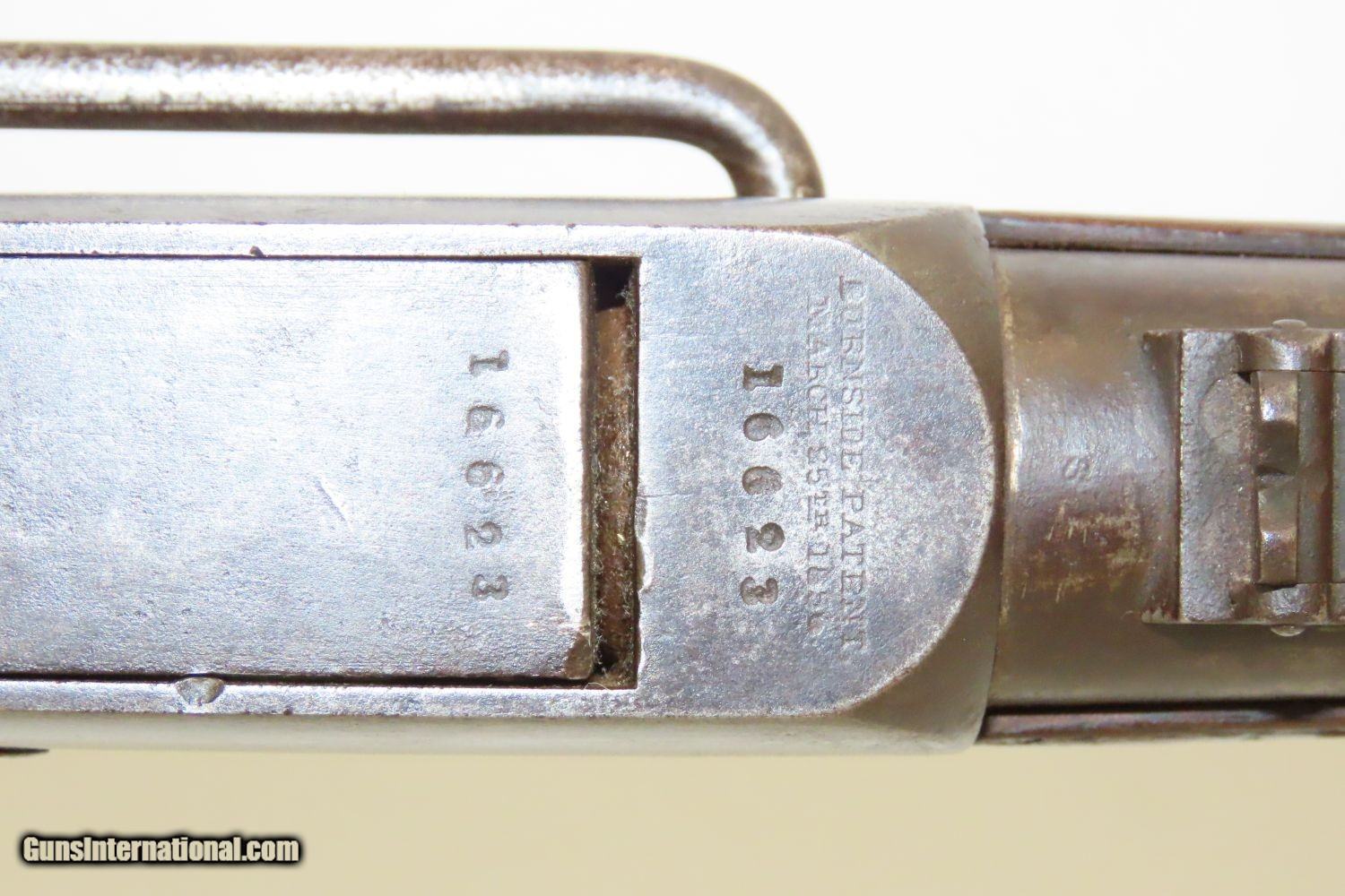 Description: CIVIL WAR Antique BURNSIDE Model 1864 SADDLE RING CAVALRY Carbine .54 Cal Classic PERCUSSION Carbine Made in Providence, RI Here we present an antique Burnside Model 1864, also known as the Burnside “5th” Model Carbine, made circa 1863 to 1865 by the Burnside Rifle Company in Providence, Rhode Island. General Ambrose Burnside was an official in the company before the war, but was not involved in wartime development of the rifle. It employed a cone shaped metal cartridge for use in the percussion firing system. Though historical literature refers to a Model 1863, none are marked with this date and collectors have generally referred to this model as the 5th model. Approximately 43,000 carbines of this model were produced, with the serial numbers running from 1 through 43,000. There were 19,000 that featured the “Model 1864” stamped on the top of the breech, with later production reverting back to use the 1856 patent date. Standard features include an iron buttplate, a single iron barrel band, a saddle riding bar and ring on the left side, a strap hook on the bottom of the butt, a double hinged iron loading lever which also serves as a trigger guard, a hinged sight, and a chamber tapered for the unique Burnside metal cartridge with a priming hole in the bottom for percussion. The overall condition is very good. The action is strong. The bore is in great shape. The stock is solid and has a bit of soldier graffiti on the butt stock. This is a really nice example that you will be pleased with! Own the original! This is a legitimate antique and not a reproduction. Barrel is 21 inches. Caliber: .54 Overall condition as seen in photos. Very Fast. Very Safe. FREE SHIPPING WORLDWIDE. Delivered directly to your door by express mail! Guaranteed AUTHENTIC & Includes CERTIFICATE OF AUTHENTICITY. ancestryguns $2585 #201602 SOLD Antique: Yes |