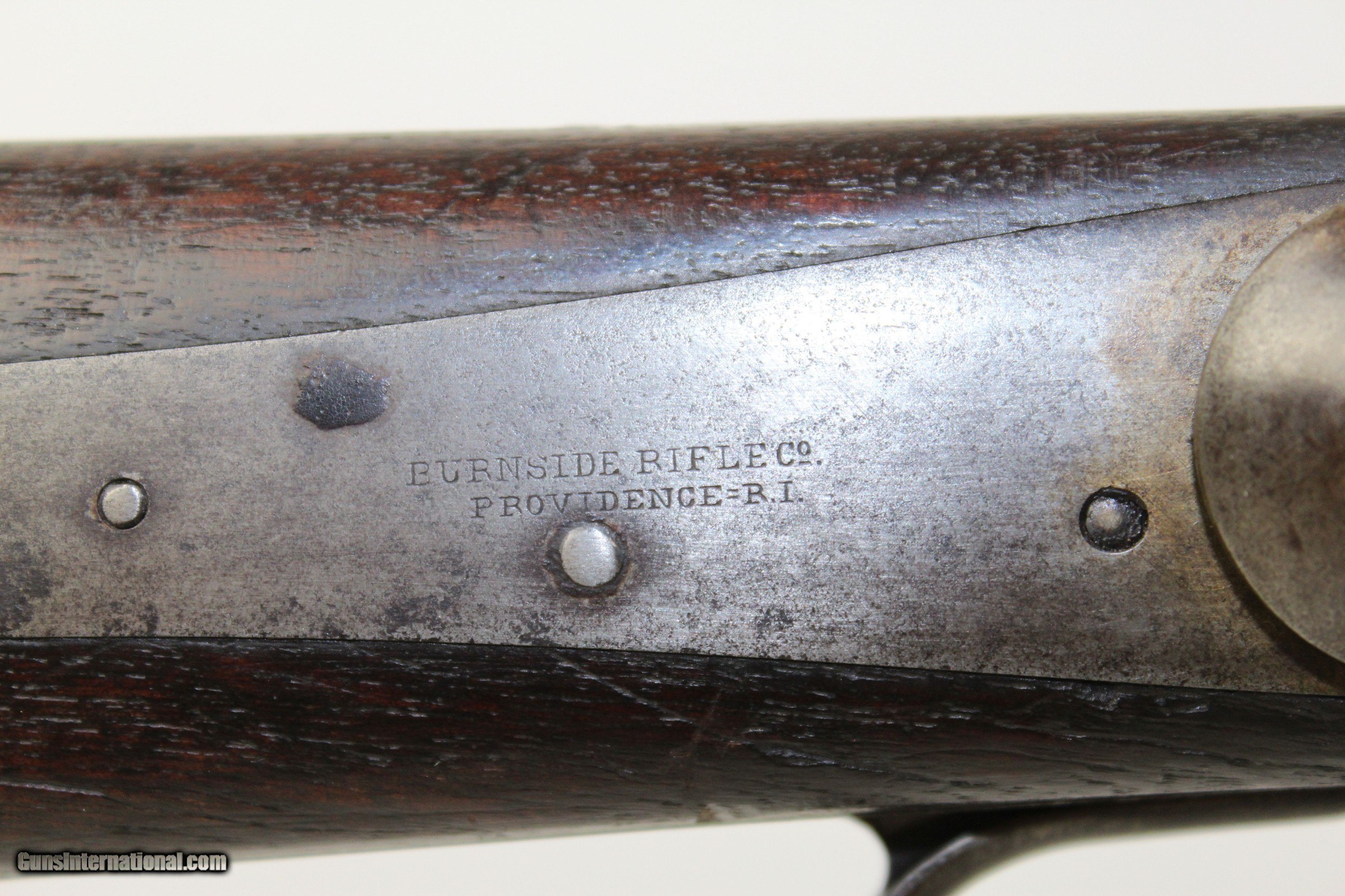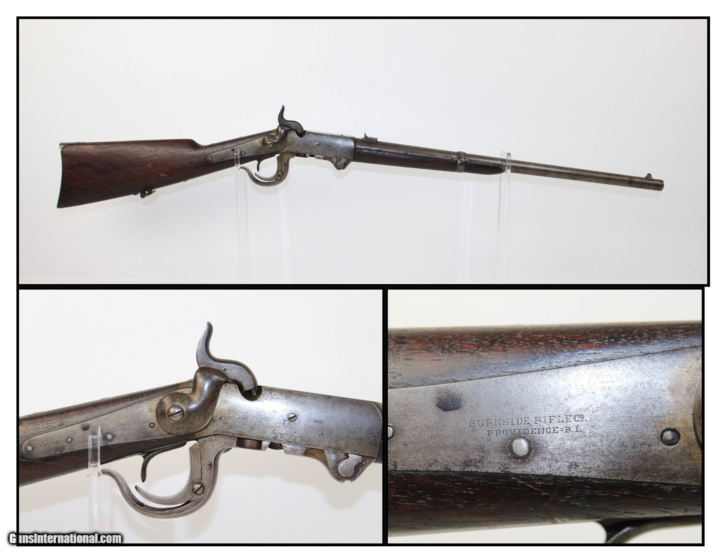 Description: CIVIL WAR BURNSIDE 5th Model Percussion CARBINE Designed By Union General Ambrose E. Burnside Here we present an antique Burnside 5th Model Percussion Carbine, made in 1864. This carbine was designed by the famous Union General Ambrose E. Burnside, who resigned his position in the Army to work on it. He was also the treasurer of Bristol Firearms Co., the company that made his patented carbine, prior to the American Civil War. He had the misfortune to find it necessary to sell off his shares in the company just prior to the outbreak of the war in June 1859. His misfortune did not end there. He was plagued by politics in his career in the Army, and despite success and promotion, he was quickly torn down by his enemies within the Army for any misstep. Burnside himself participated in the First Battle of Bull Run, Battle of Antietam, Battle of Fredericksburg, Battle of the Wilderness, and the Battle of the Crater. The carbine which bore his name was unlike many other percussion carbines of the time, utilizing a copper or foil casing. This made it very easy and relatively quick to load and unload. The firearm was made in 5 distinct models with improvements being made along the way. The Burnside Carbines were one of the most prolific of all the different carbines of the Civil War numbering about 53,000 in all configurations. Among the known cavalry regiments that used them were: 1st Michigan; 3rd Indiana; 5th, 6th and 7th Ohio; 1st New Jersey; 3rd West Virginia; 3rd, 14th, and 18th Pennsylvania; 2nd, 12th, 14th, and 16th Illinois. The top of the barrel is marked “CAST STEEL”. The top of the frame is marked “BURNSIDE PATENT/MODEL OF 1864”. The overall condition is very good. The metal surfaces have a gray patina. The markings are clear and legible. The numbers match. The bore is bright with sharp rifling. The stock is in good shape and solid, showing appropriate wear. The action on this carbine is excellent. Own the original! This is a legitimate antique and not a reproduction. Barrel is 21 inches. Caliber: .54 percussion Overall condition as seen in photos. Very Fast. Very Safe. FREE SHIPPING WORLDWIDE. Delivered directly to your door by express mail! Guaranteed AUTHENTIC & Includes CERTIFICATE OF AUTHENTICITY. ancestryguns $2450 #6423 SOLD Antique: Yes |