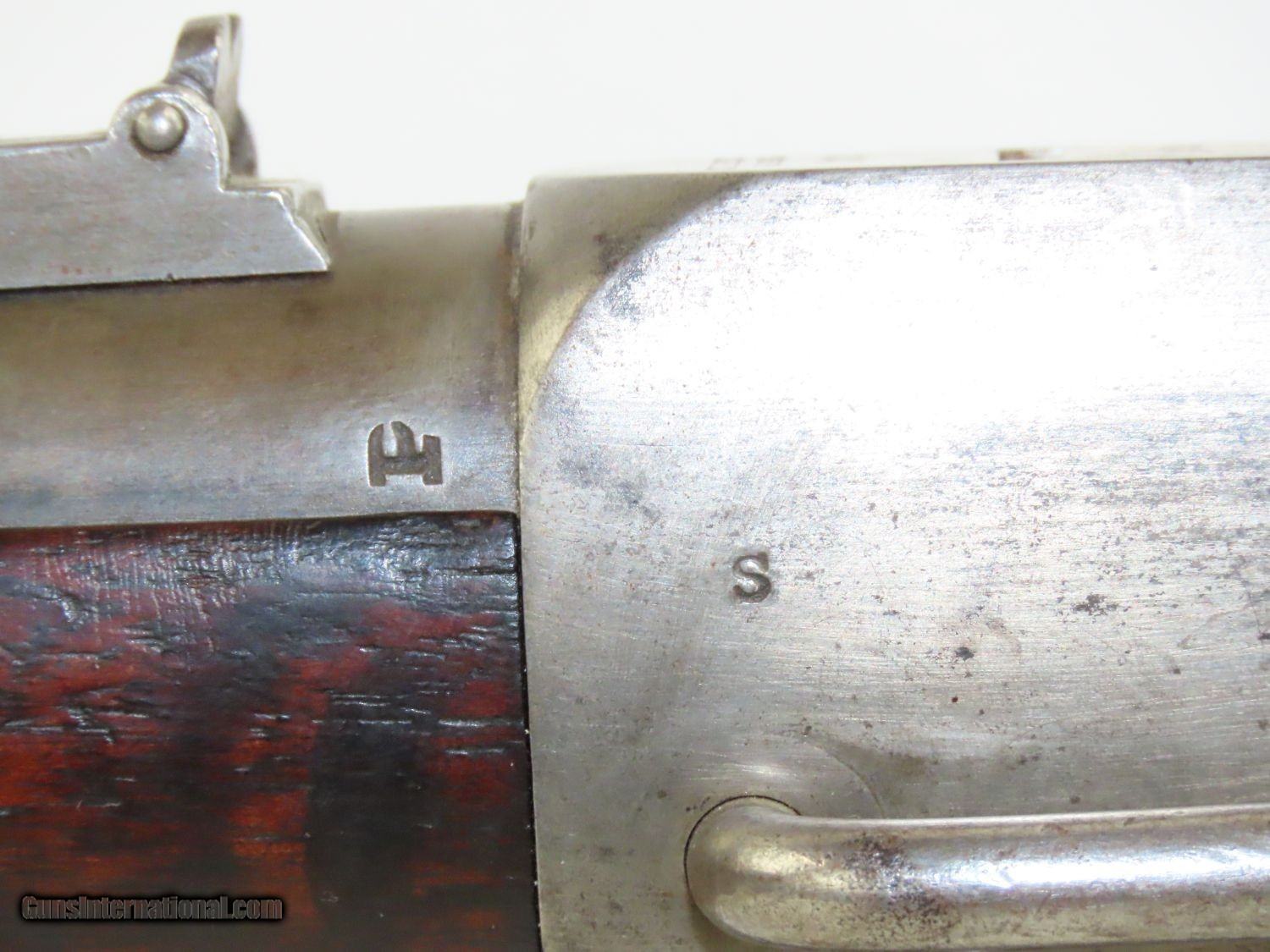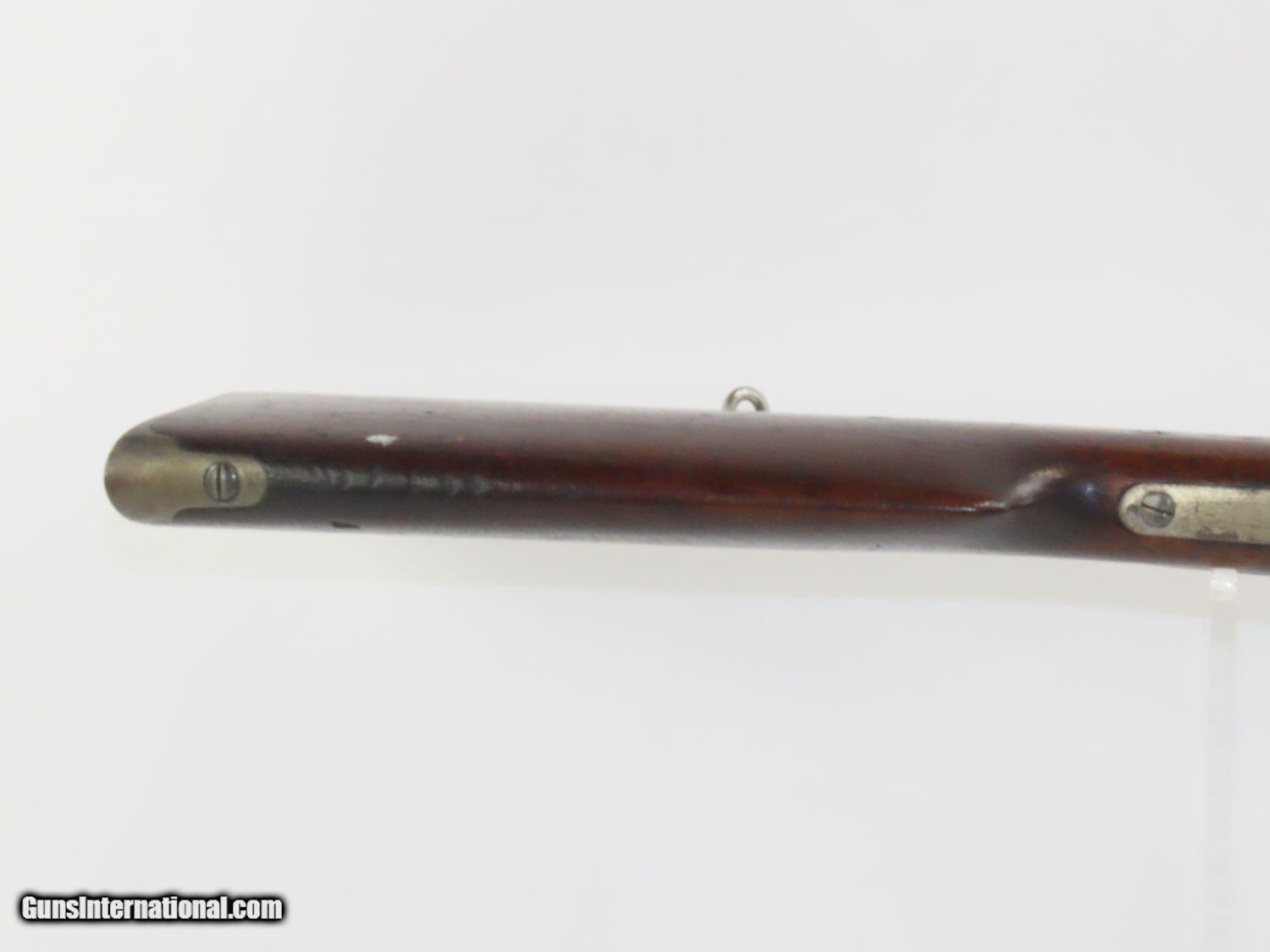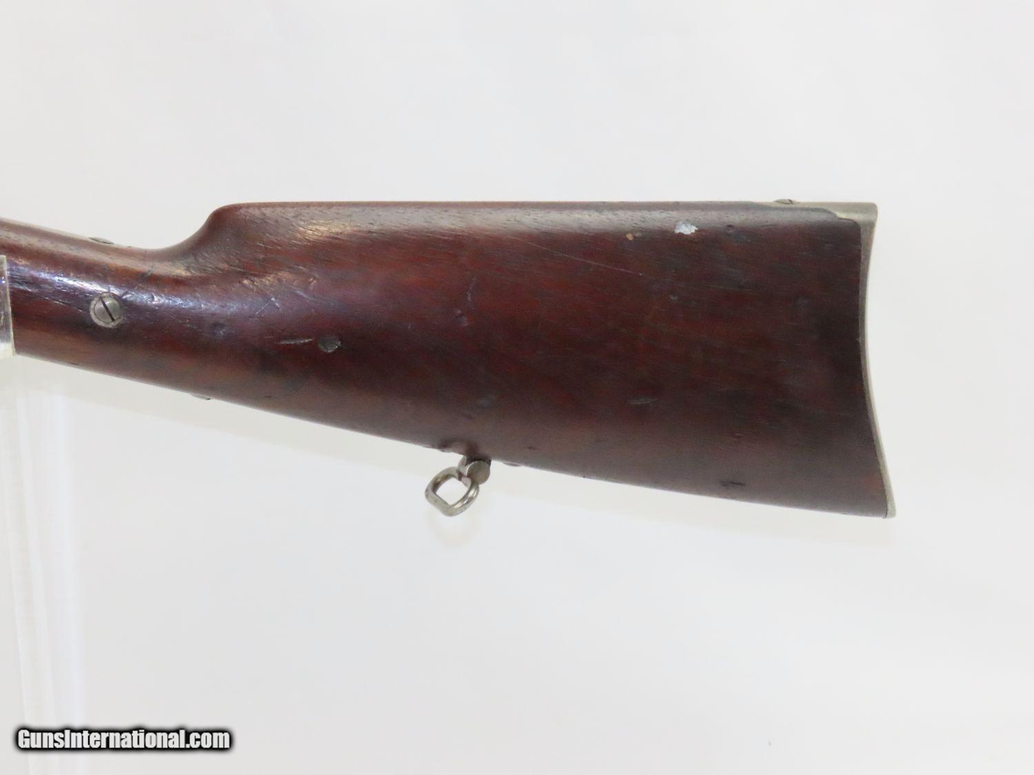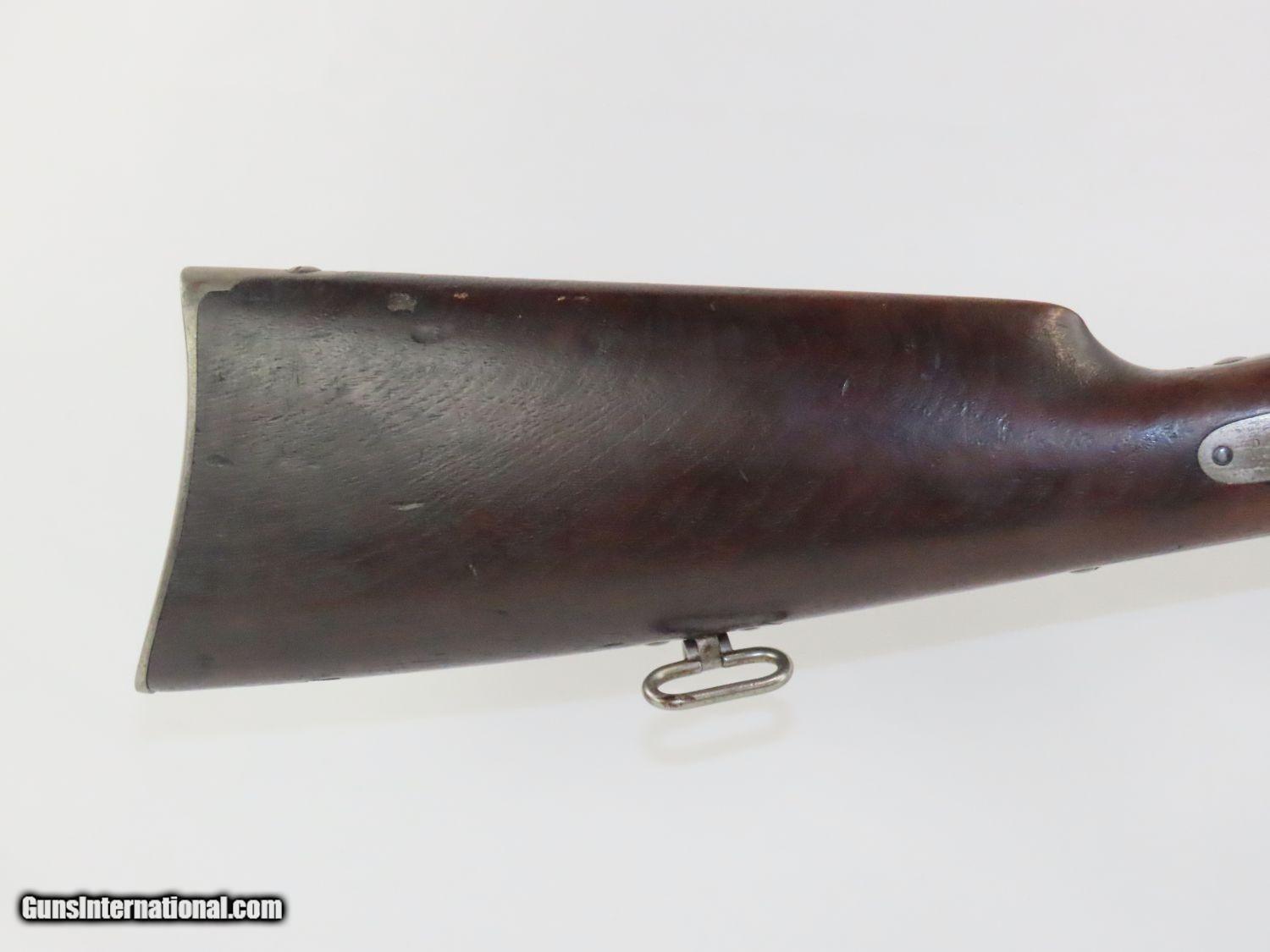 Description: CIVIL WAR BURNSIDE Rifle Co. Model 1864 “5th” Model SADDLE RING Carbine One of the Most Prolific Civil War Carbines! Here we present an antique Burnside Model 1864, also known as the Burnside “5th” Model Carbine, made circa 1863 to 1865 by the Burnside Rifle Company in Providence, Rhode Island. General Ambrose Burnside was an official in the company before the war, but was not involved in wartime development of the rifle. It employed a cone shaped metal cartridge for use in the percussion firing system. Though historical literature refers to a Model 1863, none are marked with this date and collectors have generally referred to this model as the 5th model. Approximately 43,000 carbines of this model were produced, with the serial numbers running from 1 through 43,000. There were 19,000 that featured the “Model 1864” stamped on the top of the breech, with later production reverting back to use the 1856 patent date. Standard features include an iron buttplate, a single iron barrel band, a saddle riding bar and ring on the left side, a strap hook on the bottom of the butt, a double hinged iron loading lever which also serves as a trigger guard, a hinged sight, and a chamber tapered for the unique Burnside metal cartridge with a priming hole in the bottom for percussion. The overall condition is very good+. The action is excellent. The bore is shiny bright with sharp rifling. “GMO” is stamped under the forearm just in front of the trigger guard. Own the original! This is a legitimate antique and not a reproduction. Barrel is 21 inches. Caliber: .54 Overall condition as seen in photos. Very Fast. Very Safe. FREE SHIPPING WORLDWIDE. Delivered directly to your door by express mail! Guaranteed AUTHENTIC & Includes CERTIFICATE OF AUTHENTICITY. ancestryguns $2250 #20576 SOLD Antique: Yes |