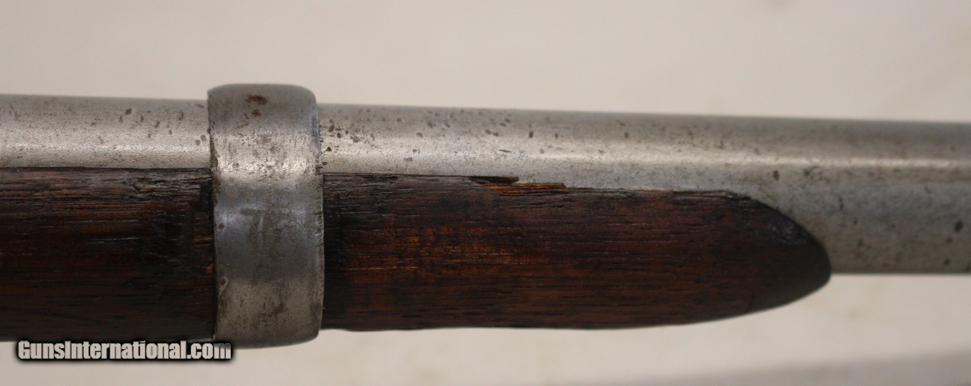Description: We are offering for a sale an antique BURNSIDE Patent SADDLE RING CARBINE rifle chambered in .54 Burnside caliber. This breech loading rifle saw widespread use during the Civil War. This rifle has a patent date of 1856. The gun remains in very good functioning condition. Matching serial numbers! 21” barrel is very good with greyed finish. The bore remains bright with very good, crisp rifling. The crown is marked “Cast Steel 186?”. Sight intact however rear flip sight is missing half of the “3” sight. Receiver is very good with greyed finish. Saddle ring and bar excellent. Crisp markings. SN# 27836. Trigger guard lever functions properly and lowers breech block for loading. Hammer cocks and fires properly. Shoulder stock remains very good with field wear; No breaks or cracks. Fore-end is good with some top edge splintering mainly around barrel band. Original buttplate intact. ANTIQUE SHIPS DIRECTLY TO BUYER SHIPPING & INSURANCE $39.95 **** PLEASE NOTE: WE ONLY ACCEPT MASTERCARD AND VISA AS PAYMENT OPTIONS (please note we charge a non-negotiable 3% CC fee) **** **** WE TAKE CREDIT CARD PAYMENT OVER THE PHONE (508-835-5400). WE DO NOT TAKE PAYMENT THROUGH THIS **** PLEASE LOOK AT ALL PHOTOGRAPHS FOR CONDITION Please know the legality of any weapon in your state before . If a gun can’t be transferred to you we will charge a 15% re-stocking fee. We are in the shop MODAY, WEDNESDAY, THURSDAY, FRIDAY and SATURDAY 8am-4pm EST. We will be in touch within 24 hours of your purchase. Please be ready to provide CC information. Please have your FFL email a copy of their license to: baystategunbuyersverizon. No Face To Face Transfers! Please note: Clicking "buy" does not guarantee that this gun is yours, However clicking “Buy” will reserve this gun for you, if it hasn’t been sold in store. We will try to do our best to remove the posts as efficiently as possible, but sometimes delays may ensue. “Buy” is your safest bet to reserve a gun. Also please add 6.25% MA state sales tax (if from MA) and 3% credit card shop courtesy fee for all out of state buyers Before calling with concerns read these conditions and meet them accordingly. SOLD Antique: Yes |