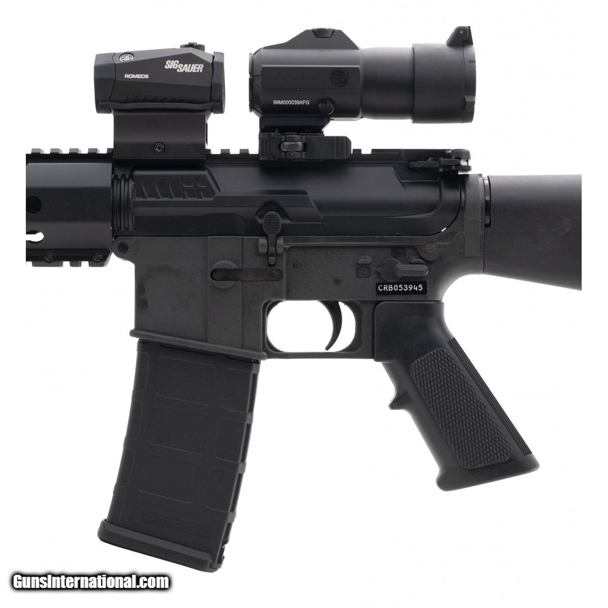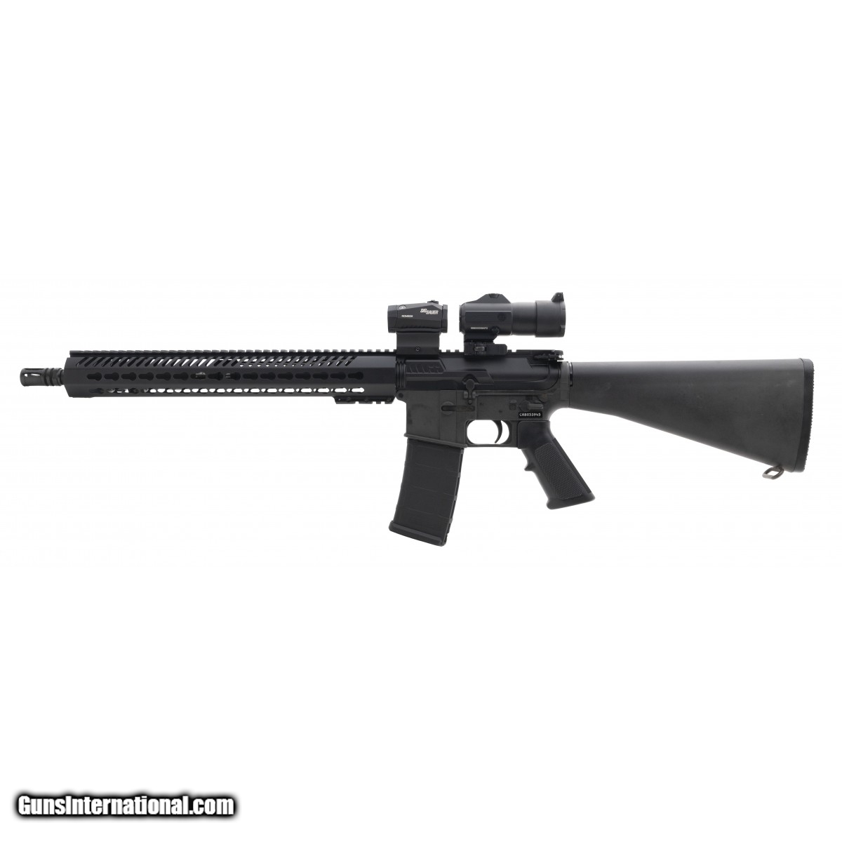 Description: " SN:CRB053945. Semi-auto rifle with a 16"" barrel, a fixed stock and a Keymod rail. Overall in excellent condition, with a Sig Romeo5 & Juliet combo. SOLD |