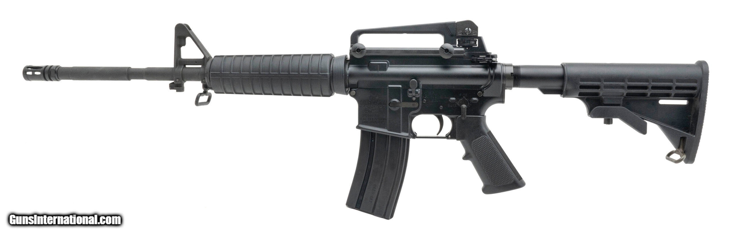 Description: "SN:BK500593. Modern production. 5.56 Nato with a 16"" barrel. Bore is in excellent condition. Semi-auto tactical rifle. Finish and adjustable stock are in very good condition. Rifle has fixed front post. Overall condition is very good. SOLD |