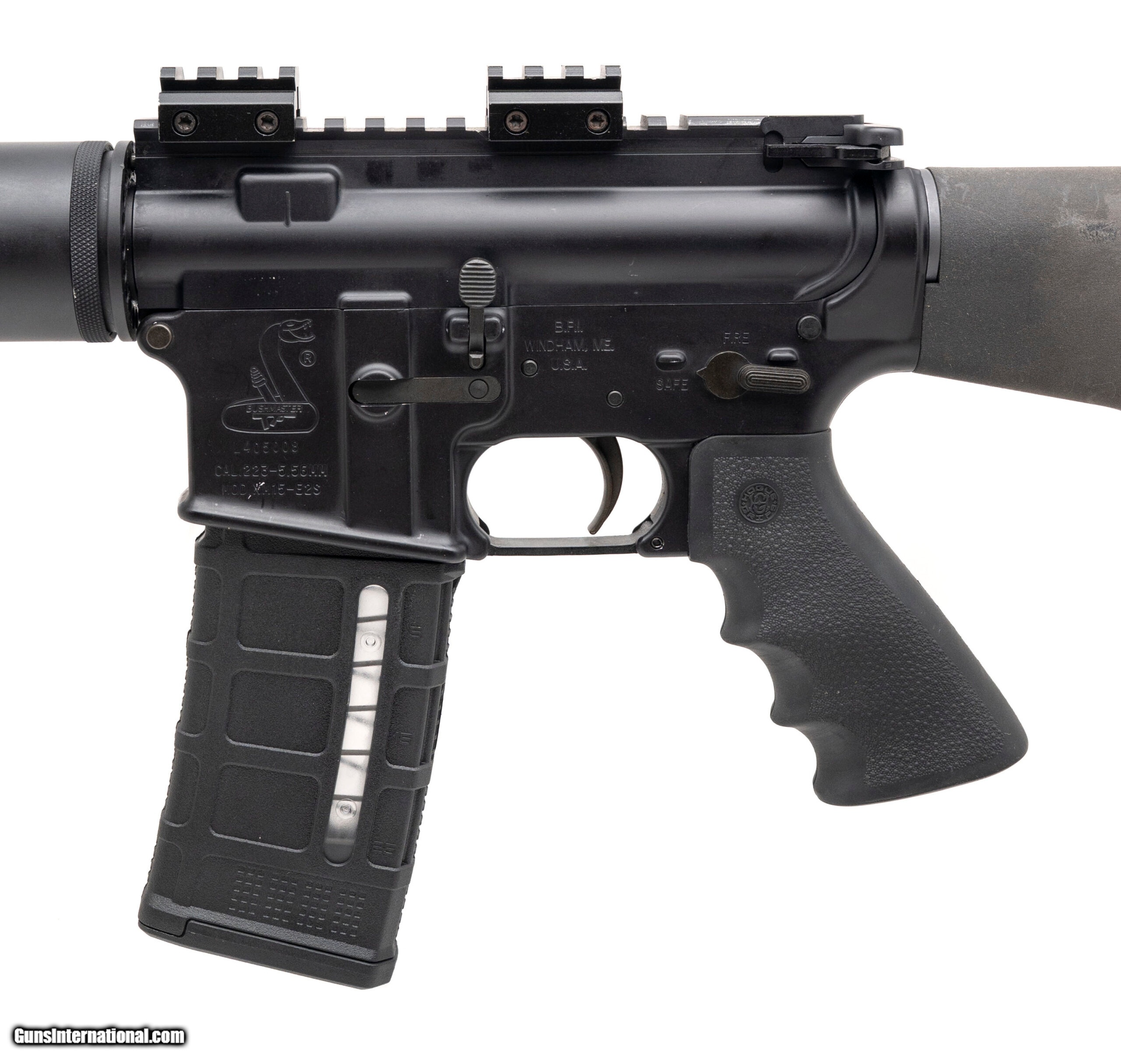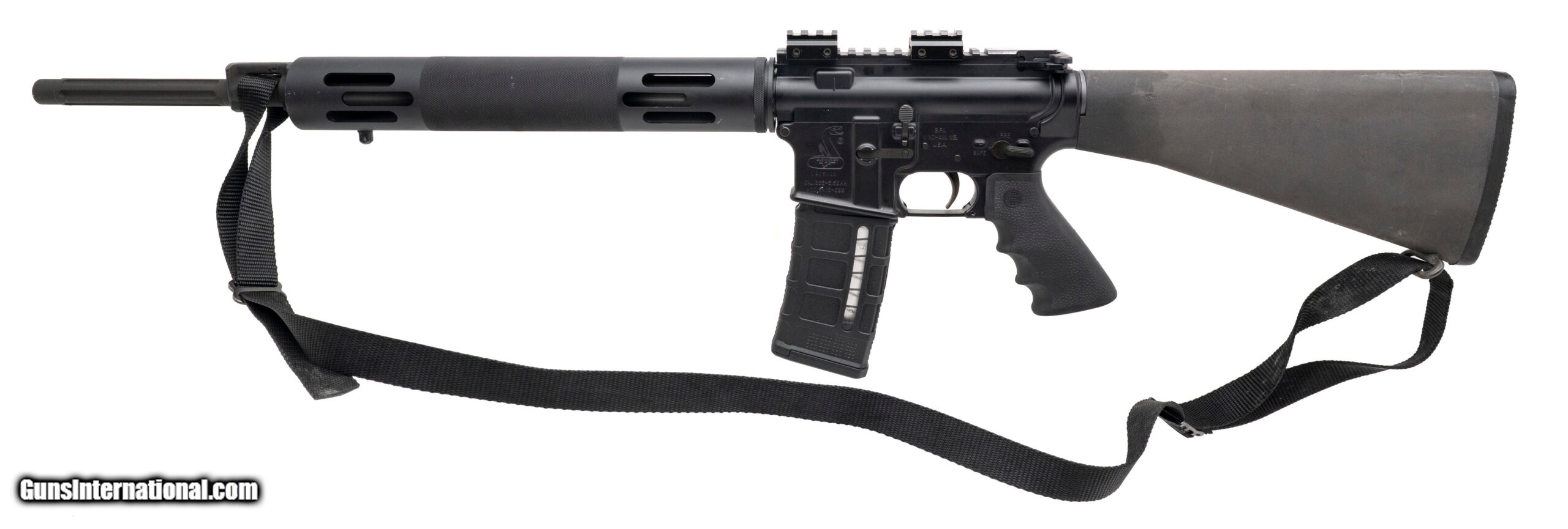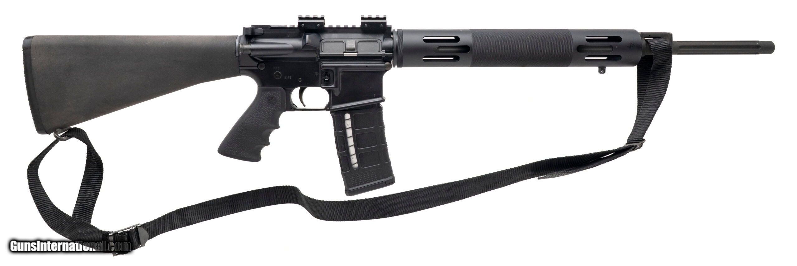 Description: "SN: L405008. Modern production, .223/5.56 Nato with a 20"" fluted barrel. Bore is bright with strong rifling. Semi-auto tactical rifle with knurled handguard and two piece scope riser. Overall condition is very good. Comes with sling. SOLD |