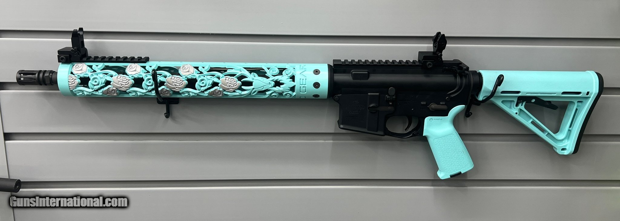 Description: Guns Listing ID: 1336730 BUSHMASTER FIREARMS XM15-E2S 5.56 NATO RIFLE OFF HAND GEAR HANDGUARD,, Floral Stag Patterned AR15 Hand Guard TIFFANY BLUE MAG Vokul 2.5-10x40 Tactical Rifle Scope Dual Illuminated Mil-dot w/ laset SOLD Manufacturer: BUSHMASTER Model: Bushmaster XM-15 E2S Caliber Info: .223 REM/5.56 NATO Condition: Used - Non-Certified Barrels: 16 BARREL Finish: ROBIN‚‚S EGG BLU |