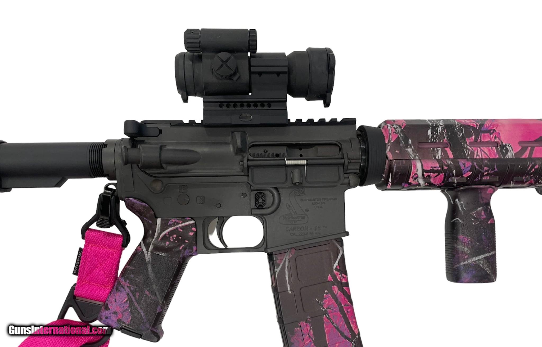 Description: Guns Listing ID: 890410 USED AS IS Comes with Magpul Muddy Girl furniture, Aimpoint PRO, 3 muddy girl magazines, 1:9\" twist rate 5.56 NATO barrel Little bit of rust on underside of A2 birdcage muzzle Includes Hardcase SOLD Manufacturer: BUSHMASTER Model: CARBON-15 Caliber Info: 5.56X45MM NATO Condition: Used - Non-Certified Barrels: 16 BARREL |