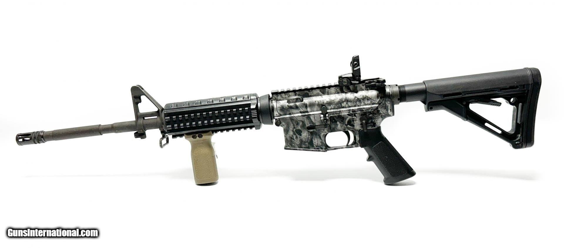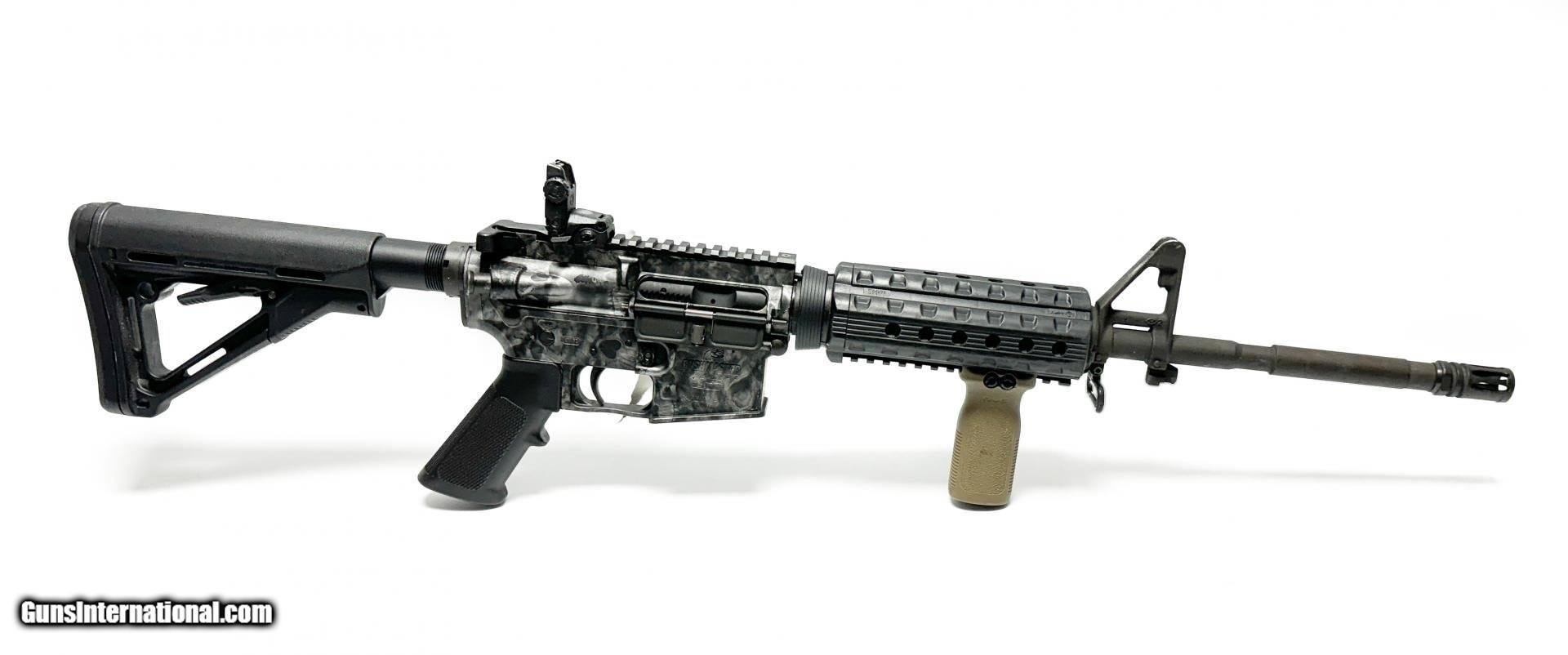 Description: Guns Listing ID: 1091716 Bushmaster Carbon-15 5.56x45mm NATO, 16\" Barrel, Commercial Spec, A2 Flash Hider, \"Reaper\" Camo, Magpul VFG, Magpul Flip-Up Back Iron Sight, No Magazine, No Box SOLD Manufacturer: BUSHMASTER Model: CARBON-15 Caliber Info: 5.56X45MM NATO Condition: Used - Non-Certified Barrels: 16 BARREL |