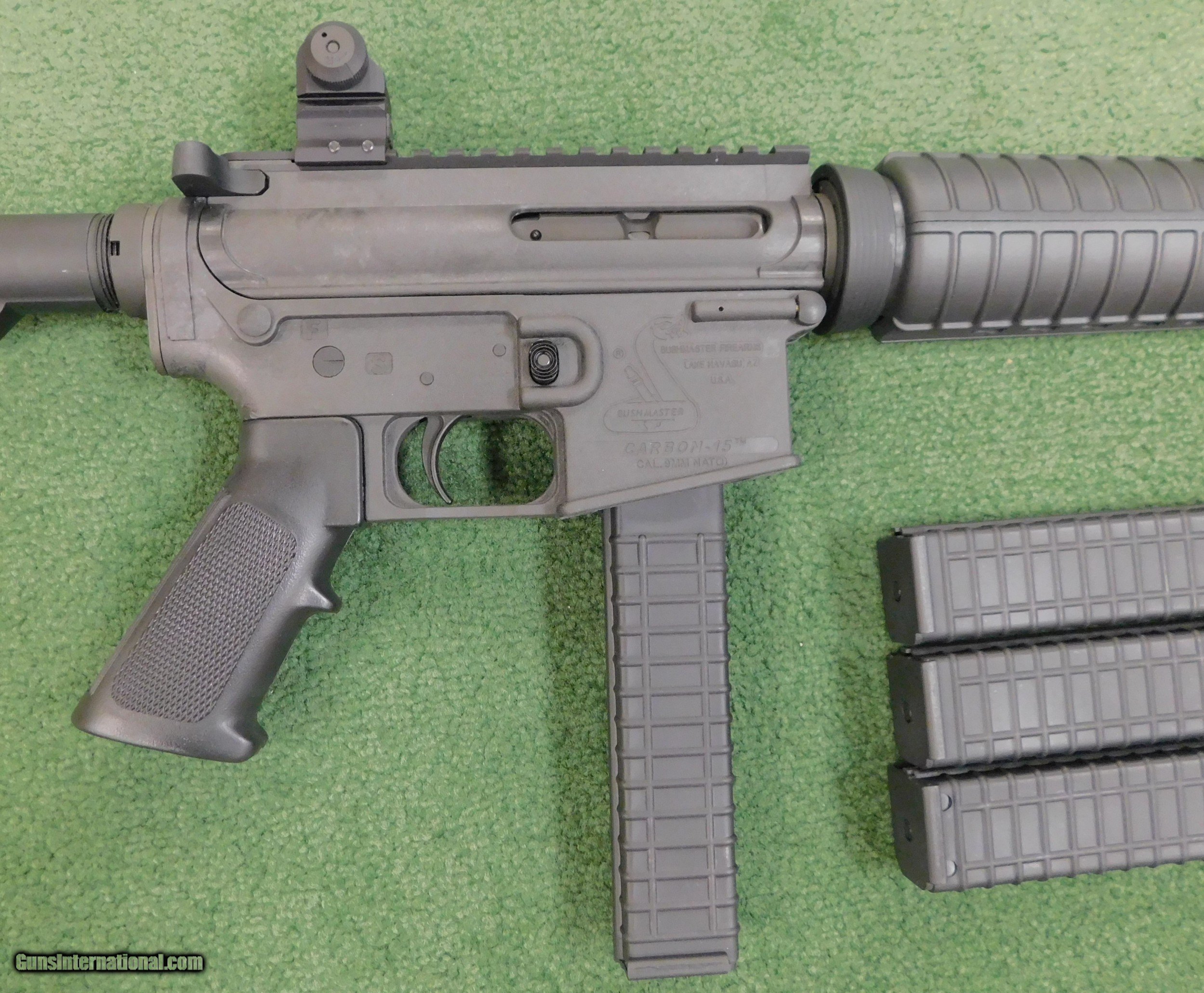 Description: Bushmaster carbon 15, 9 mm, 99%, 3 extra mags. sold SOLD |