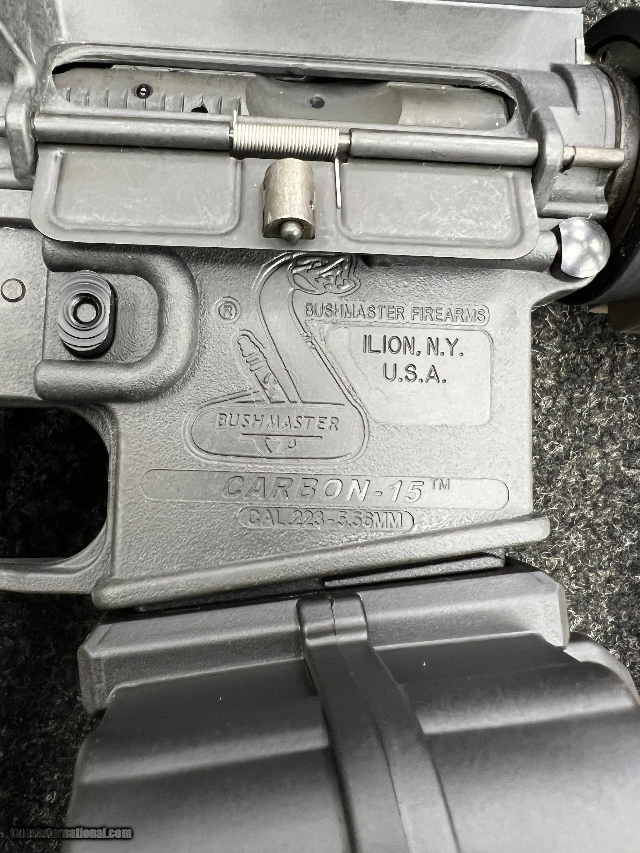 Description: Guns Listing ID: 397250 ********INCLUDES******** ONE 65 ROUND DRUM ONE 30 ROUND MAGAZINE PINTY RED LASER The Bushmaster Carbon-15 is a quality AR that is ideal for target shooting, hunting, and home-defense. Bushmaster‚‚s are regarded as well-made AR-15 style firearms with a reputation for reliability, accuracy, and longevity. This rifle features a carbine-length gas system, a 1:8 twist rate, a CAR-15 style stock, 1-30rd magazine, and a red dot sight SOLD Manufacturer: BUSHMASTER Model: CARBON-15 RED LASER 65 ROUND DRUM Caliber Info: 5.56X45MM NATO Condition: Used - Non-Certified Barrels: 16 BARREL Finish: TWO-TONE |