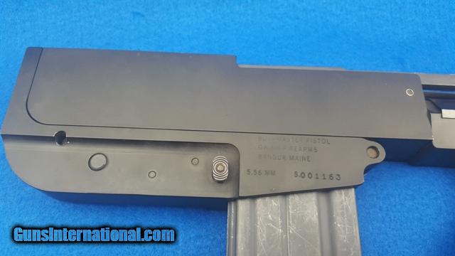 Description: Gwinn Firearms (Bangor Maine) Bushmaster Pistol, 5.56 11 1/2" barrel, AK-47 design, top mounted charging handle, aluminum receiver, older style. Glean gun, good bore and tight action. Takes AR-15 magazines. S&H $25.00 C/C add 3% SOLD Manufacturer: Gwinn Firearms Model: Bushmaster pistol Serial Number: S001163 |