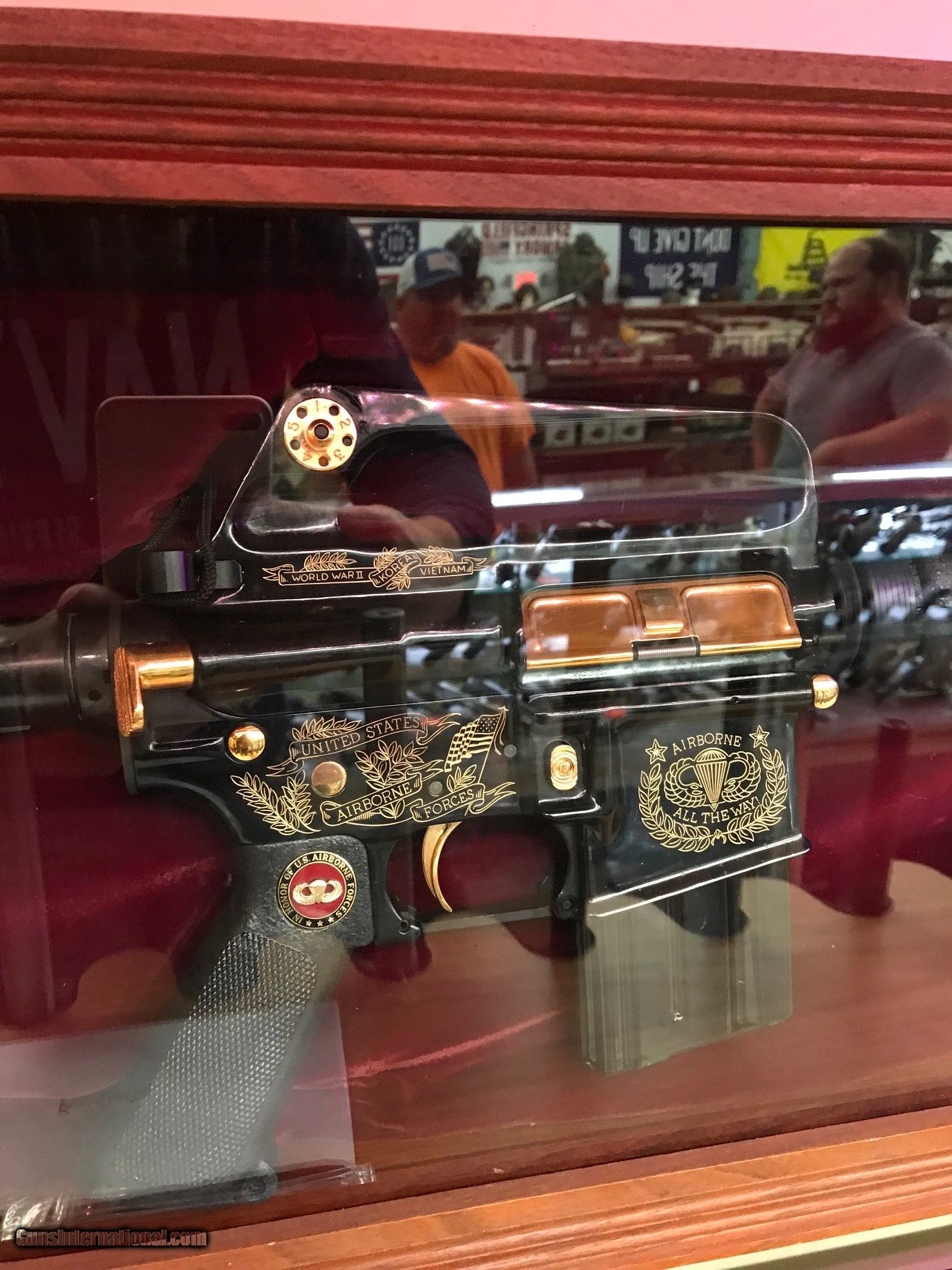 Description: Guns Listing ID: 1322154 This Bushmaster Vietnam Commemorative CAR-15 is one of the most gorgeous rifles I have ever seen. This comes in a red velvet lined display case made for this rifle. Plated in 24 Carrat Gold accents. This rifle is PERFECT. If you wanted to shoot it, it is fully functional, but I wouldn‚‚t... Don‚‚t miss your chanc SOLD Manufacturer: BUSHMASTER Model: XM15-E2S VIETNAM CLONE! Caliber Info: .223 REM/5.56 NATO Condition: Used - Non-Certified Barrels: 16 BARREL Finish: GOLD PLATED |