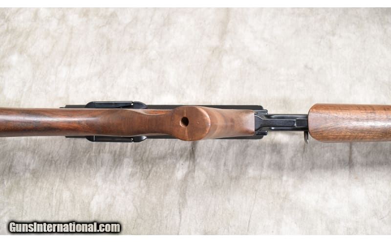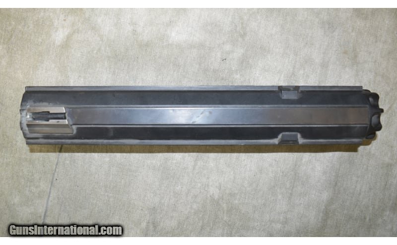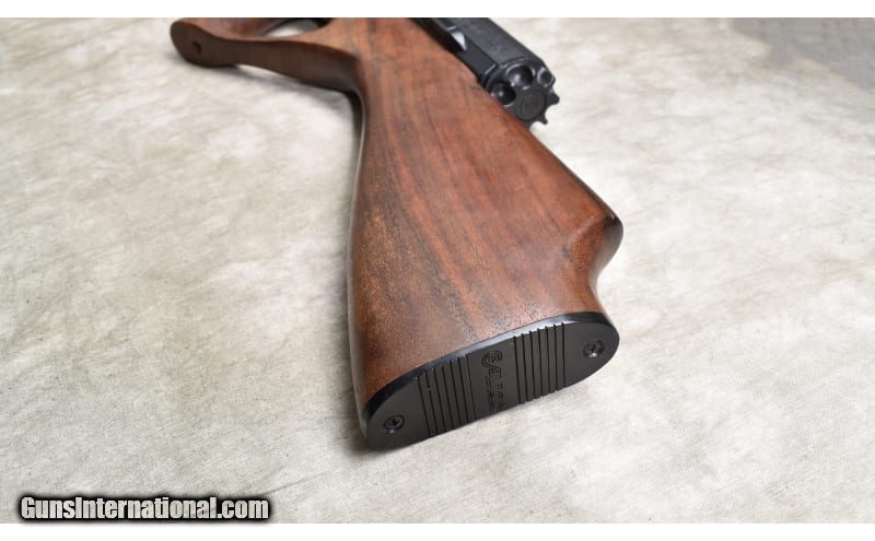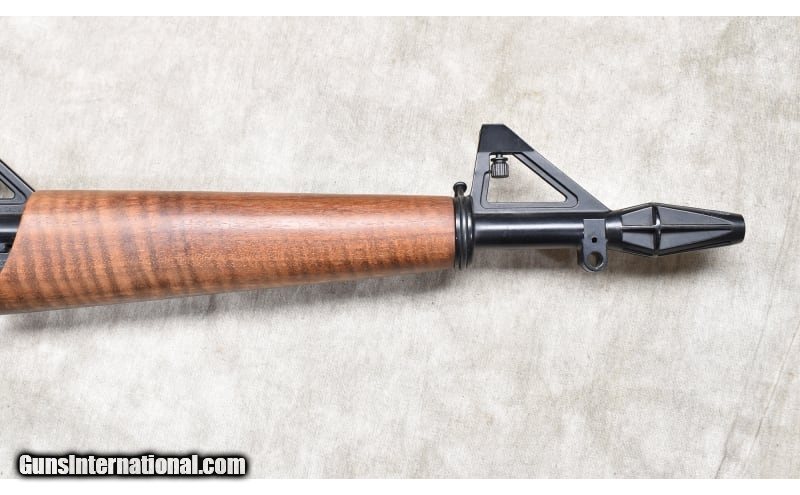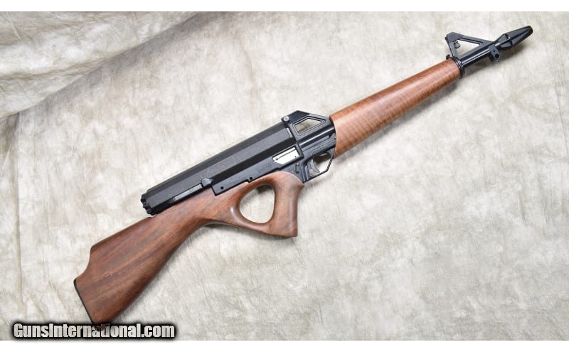 Description: Unusual piece with an AR form factor. It features a helical 100-round magazine, open sights, and thumbhole stock. .22 Long Rifle SOLD Chambers: 100 rounds .22 LR Metal Condition: Good. Wood Condition: Good. Bore Condition: Shiny and bright. Barrels: 18 inches including the flash hider. Triggers: Factory trigger. Fore End: Matching hardwood. Butt Pad: Black plate. Weight: 5 lb - Sights: Post and notch open sights. Item Location: Rogers |