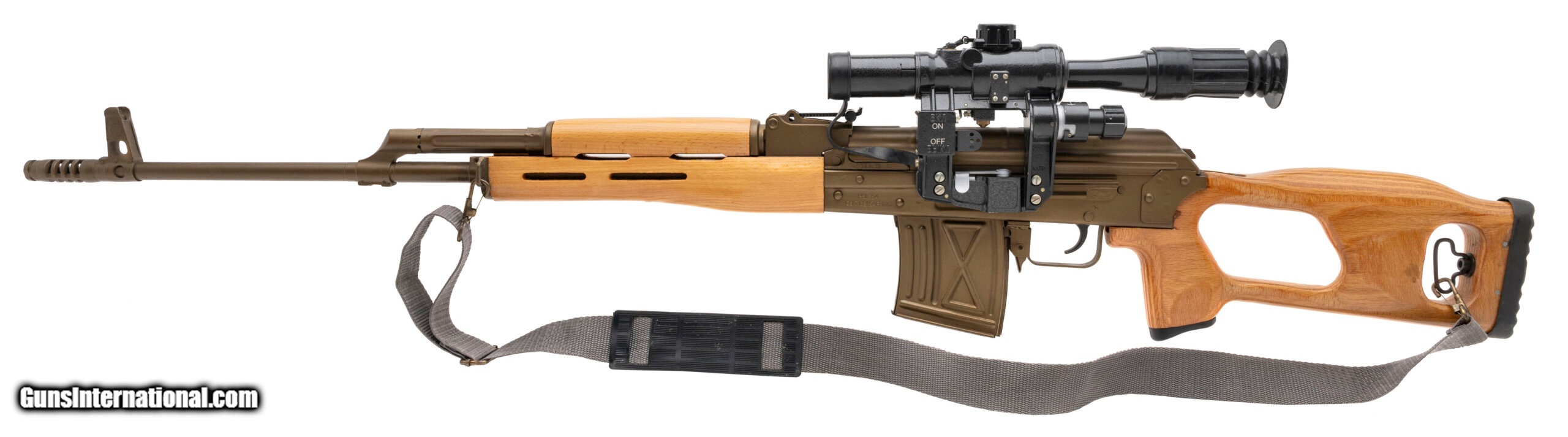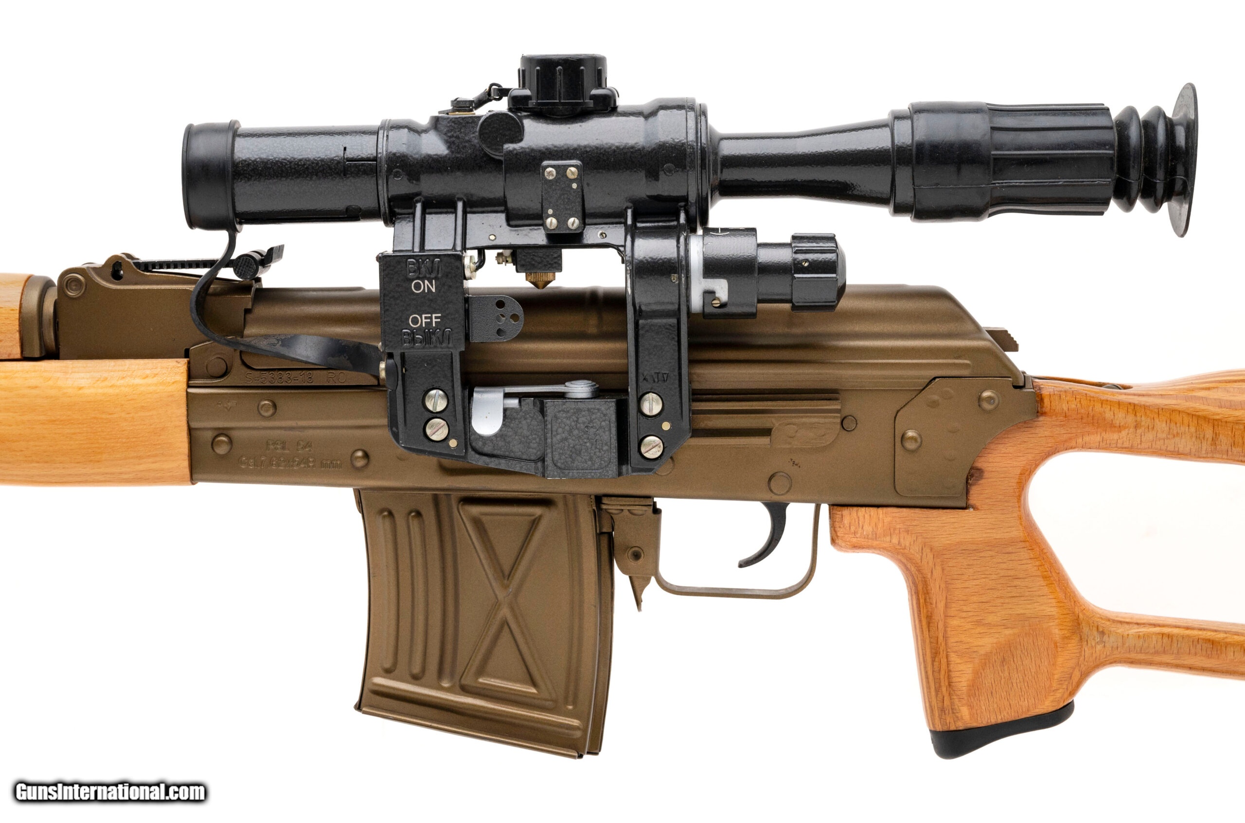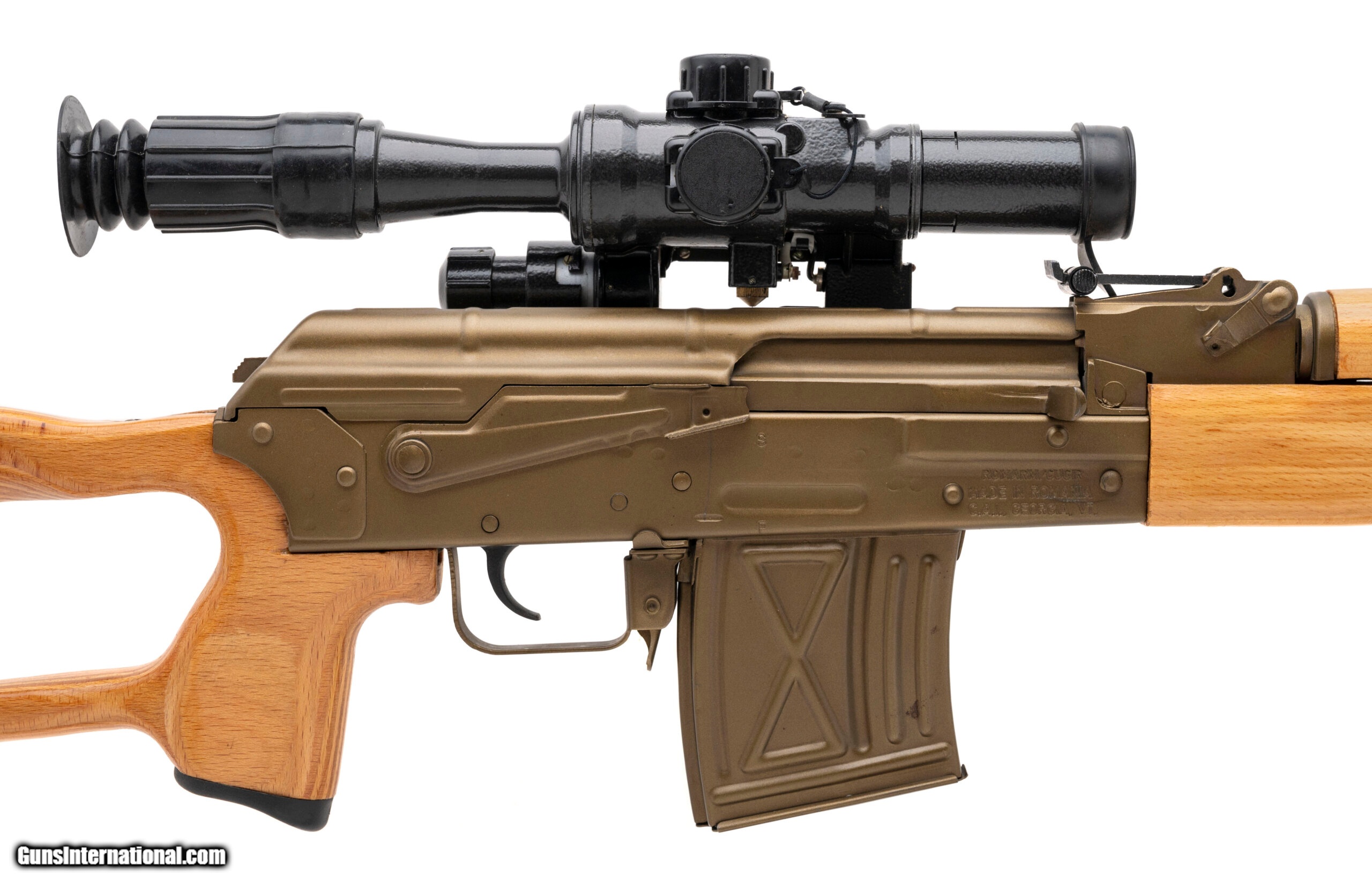 Description: "SN: S-5383-18, Modern production, 7.62X54R with a 24"" chrome line barrel with muzzle brake. Semi-automatic AK rifle. Bore, Cerakote bronze finish, and wood furniture are in excellent condition. Rifle comes with sling and Russian PSO 4X24 scope. SOLD |