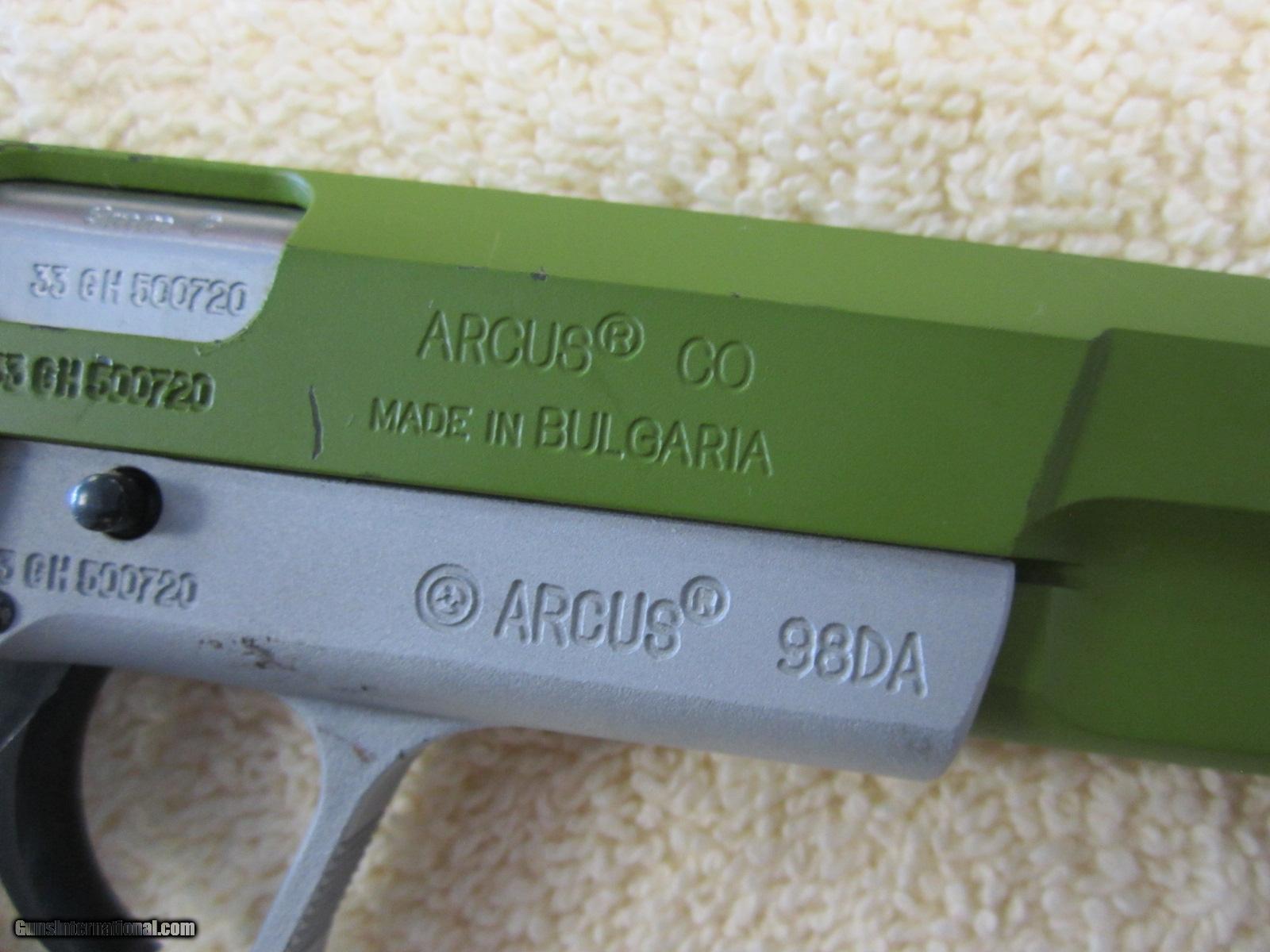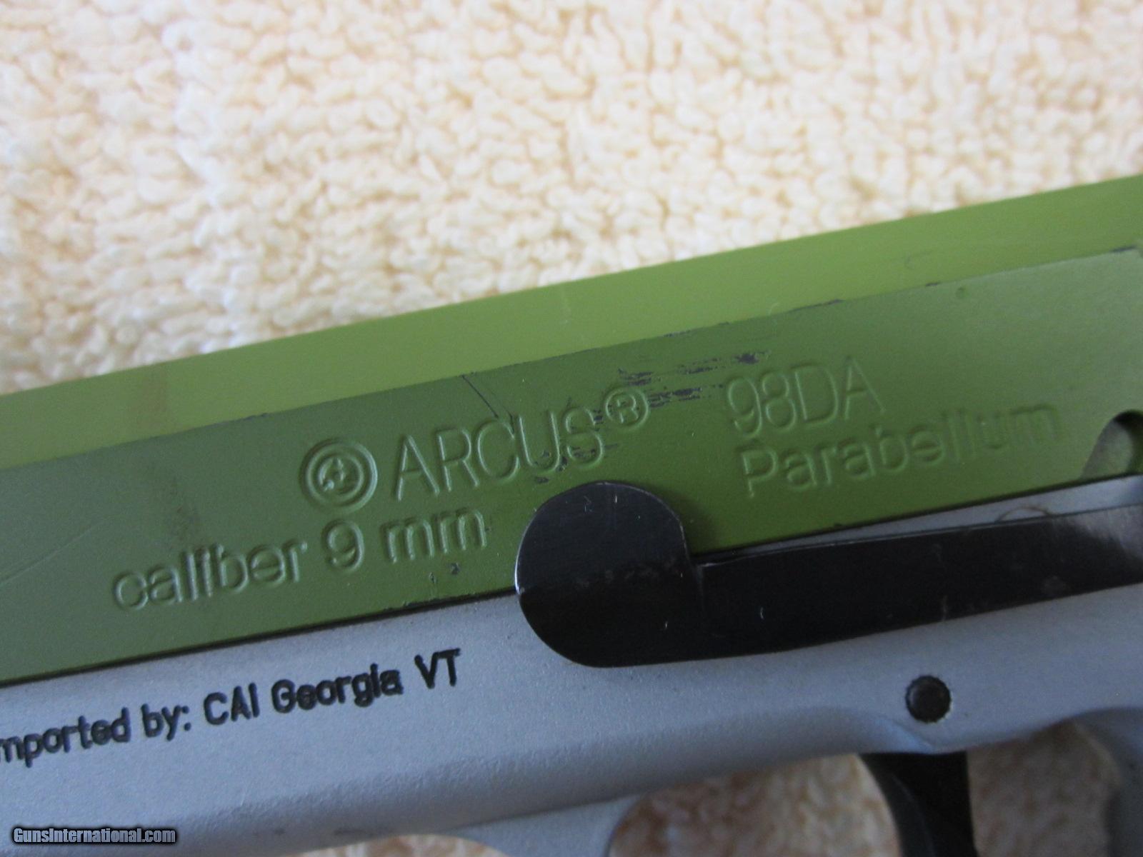 Description: This is a used Century Arms Arcus 98 DA that has a 4.6" barrel and is chambered in 9mm and comes with a 1-15+1 magazine. Great gun that has had a green finish added. Shipping and insurance $25.00. SOLD Manufacturer: Century Arms Model: Arcus Caliber Info: 9mm Condition: used Item Location: Parker Az |