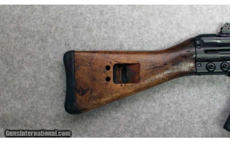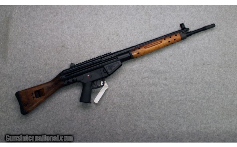 Description: A hybrid of new and old, this rifle was build from original surplus CETME parts kits coupled with a new US receiver and 18 inch barrel. SOLD Caliber Info: .308 win Metal Condition: New from Century Wood Condition: Surplus wood Bore Condition: New from Century Barrels: 18 ins Stock: Wood with sling slot Fore End: Wood Butt Pad: Black rubber butt pad Weight: 9 lbs Sights: Rotating rear with 3 peeps and 1 open with hooded front post plus picatinney rail Extras: Box / 3 20 round magazines Item Location: Hoffman Estates, IL |