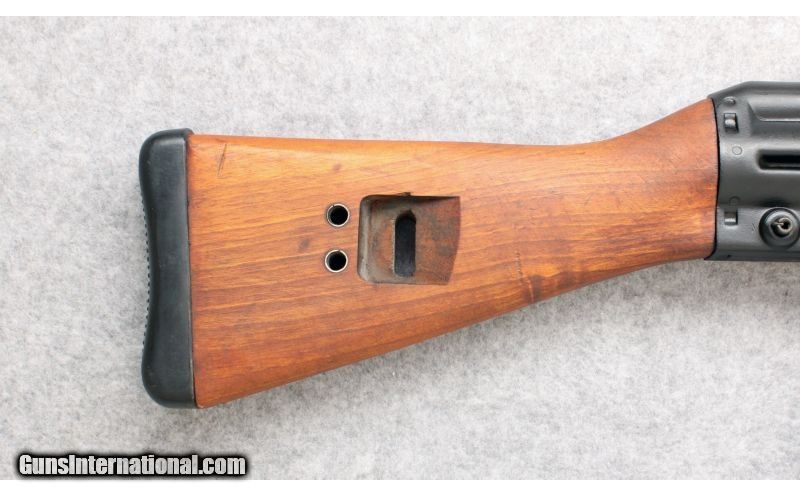Description: A hybrid of new and old, this rifle was built from original surplus CETME parts kits coupled with a new US receiver and 18 inch barrel. SOLD Caliber Info: .308 win Metal Condition: New from Century Arms Wood Condition: Surplus wood Bore Condition: New from Century Arms Barrels: 18 ins Stock: Wood with slig slot Fore End: Wood Butt Pad: Black rubber butt pad Weight: 9 lbs Sights: Rotating rear with 3 peeps and 1 open with hooded front post plus picatinney rail Extras: Box / 3 Mags Item Location: Hoffman Estates, IL |