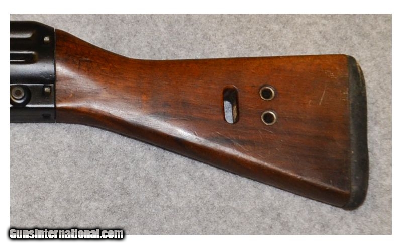 Description: The C-308 with Picatinny top rail and 4 position CETME rear sight. The barrel is 18" long and has a threaded muzzle with a muzzle brake. All the metal on the rifle and the trigger group look to be new with original Spanish CETME military surplus wooden forearm and buttstock. The C308 fires the standard 7.62x51mm (.308) round and comes with three Spanish CETME surplus 20 round magazines. SOLD Caliber Info: .308 Win. Chambers: Roller delay blow back. Metal Condition: Very good. Wood Condition: Good. Bore Condition: Very good. Barrels: 18" with compensator. Triggers: Single trigger for single action firer. Stock: CETME surplus wood. Fore End: CETME surplus wood. Butt Pad: Black rubber. Weight: 10 Lbs. Sights: 4 position aperture rear and fixed post front. Extras: 3-20 round surplus magazines. Item Location: Acworth, GA |