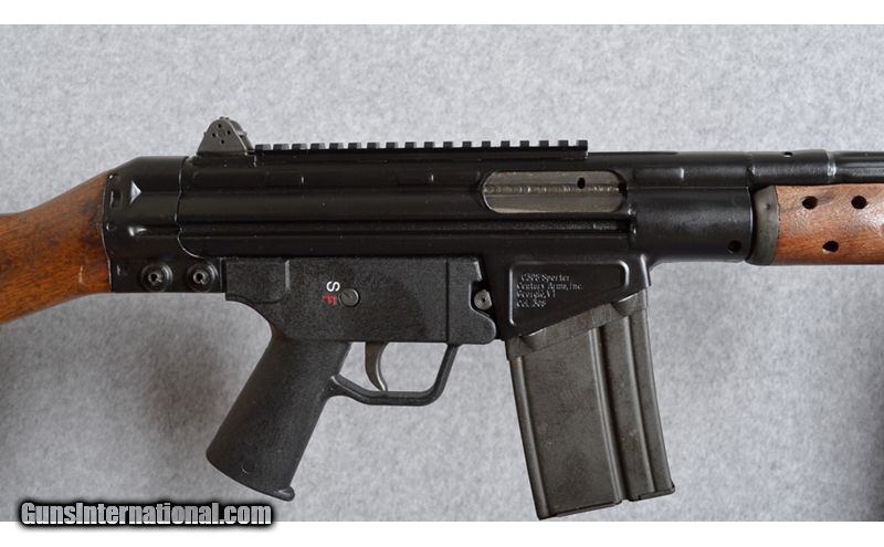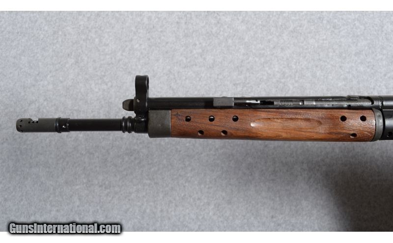 Description: .308 Winchester SOLD Metal Condition: Good. Wood Condition: Fair condition with rough surface. Forend is in better shape than the butt stock. Barrels: 19 1/2" Barrel with brake. Triggers: Single. Stock Dimensions: 14 5/8" Length of pull. Fore End: Wood. Butt Pad: Rubber pad. Sights: Factory sights. Protected front post, and rear with 4 folding leafs, 3 peep apertures and one traditional open sight. Item Location: Boise, ID |