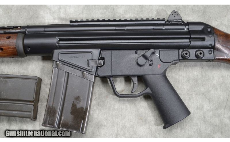Description: A remanufactured CETME from Century Arms, featuring a mixture of new manufacture and surplus parts, these are outfitted with a Picatinny Rail on top. SOLD Caliber Info: .308 Win. Chambers: 20 round magazines Metal Condition: Good, Wood Condition: Good Bore Condition: Shiny and bright Barrels: 18 Inch Chrome Moly barrel, proprietary muzzle brake Stock: Original wood Stock Dimensions: 14 - 5/8 LOP Fore End: Original wood Butt Pad: Rubber pad Weight: 10 lbs - 2 oz. Sights: Post and peep combat sights, Mil-Spec Picatinny rail Extras: Box, manual, three magazines total Item Location: Rogers,, MN |
