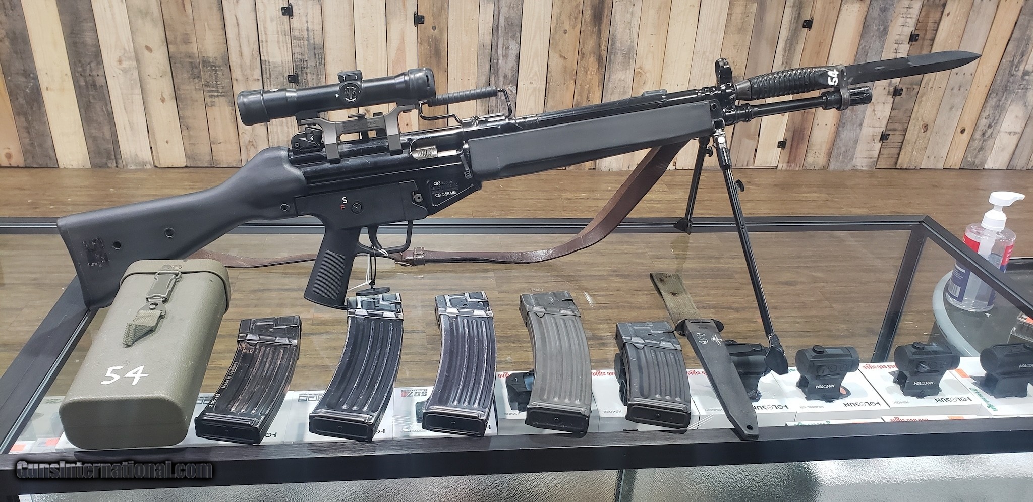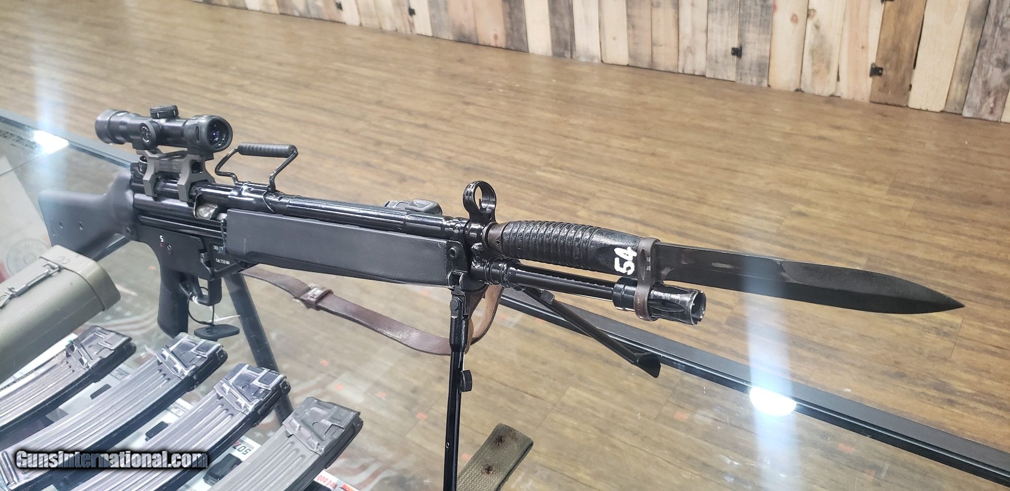 Description: Guns Listing ID: 1128778 HK33 Clone, comes with 5 magazines, a removable scope mount and bayonet. A more compact version of the CETME rifle, the C93 is chambered for the 5.56/.223 cartridge. It features a fluted chamber for reliable cycling and a roller lock bolt system and are built with a mixture of original imported parts & enough US parts to make them 922 legal . The stock, pistol grip and forend are of impact resistant plastic. SOLD Manufacturer: CENTURY ARMS Model: C93 Sporter Caliber Info: 5.56X45MM NATO Condition: Used - Non-Certified Barrels: 16 BARREL Finish: BLACK |