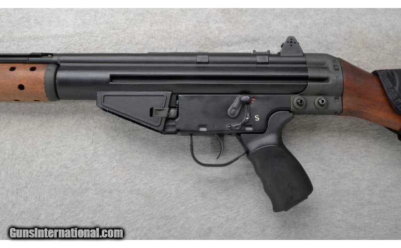 Description: This Century Arms Model CETME is a right hand semi-auto rifle in .308 Win. Cal. It has an 18 inch barrel plus a muzzle device. A hooded adjustable post front sight and a rotating 4 position rear sight. The butt stock is a smooth grip hardwood and it has a black polymer full pistol grip with finger grooves. The forearm is a smooth grip hardwood with finger grooves and vent holes. Made in U.S.A. .308 Winchester SOLD Chambers: 20 round magazine. Metal Condition: Very Good. Wood Condition: Very Good. Bore Condition: Excellent. Barrels: 18 inch barrel plus a muzzle device. Stock Dimensions: LOP 15 1/2 inches. Fore End: Smooth grip hardwood with finger grooves and vent holes. Butt Pad: Black rubber recoil pad. Weight: 10 lb. 3 oz. Sights: Adjustable post front with an open top hood. Rotating 4 position rear. Item Location: Richfield, WI |