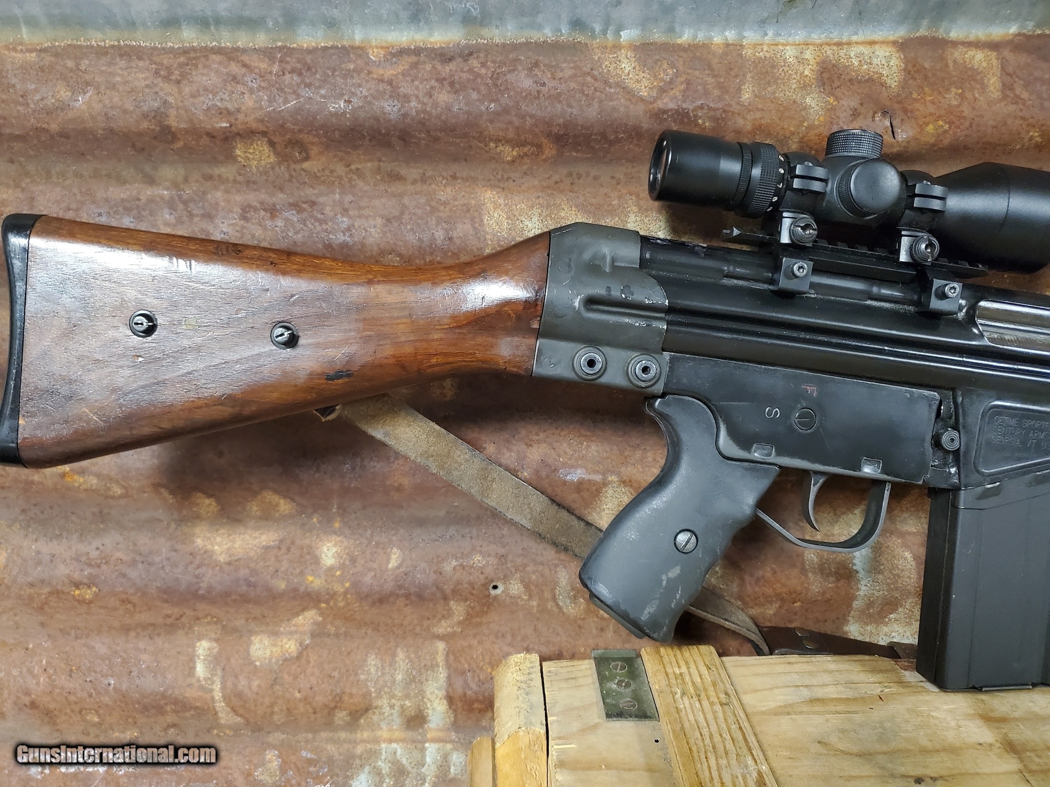 Description: Guns Listing ID: 425182 This rifle has a 20" barrel with an overall length of 40.5" the Barrel and receiver are matte black and look to be parkerized. It has a black synthetic pistol grip and wooden forend and buttstock with a thick rubber recoil pad. It comes with a scope and a sling. It also comes with 1 steel magazine. It has a strap slot in the buttstock and a loop beneath the front sight. There is a safety selector on the left of the receiver and a mag release just behind the magwell on the right side of the receiver. SOLD Manufacturer: CENTURY ARMS Model: CETME SPORTER Caliber Info: 308 WIN/7.62MM NATO Condition: Used - Non-Certified Barrels: 20 BARREL Finish: WOOD GRIPS/STEEL |