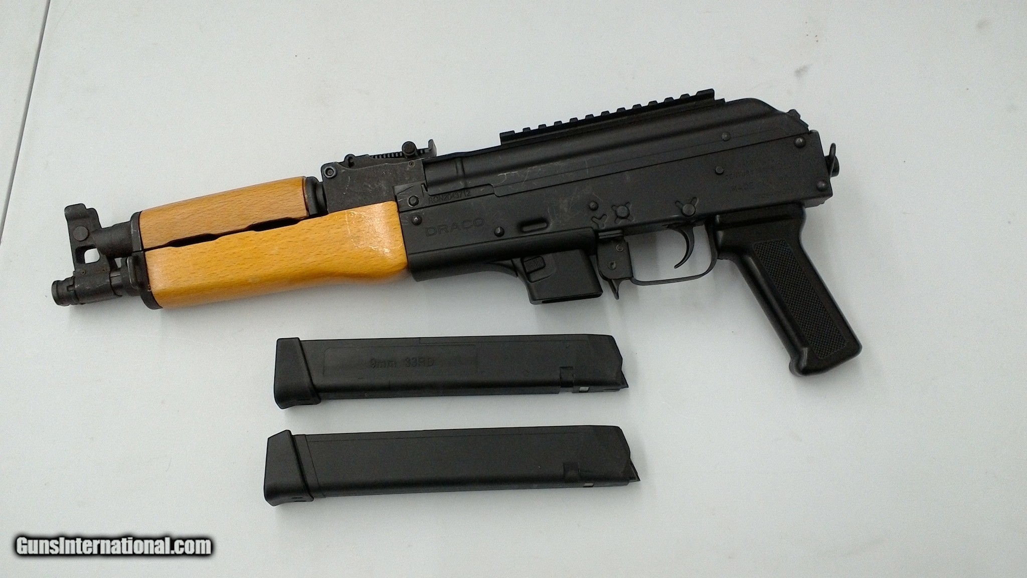 Description: Guns Listing ID: 1102416 This Draco Nak 9 comes with two 33 round magazines. SOLD Manufacturer: CENTURY ARMS Model: DRACO NAK9 Caliber Info: 9MM LUGER (9X19 PARA) Condition: Used - Non-Certified Barrels: 11 BARREL Finish: BLACK AND WOOD |