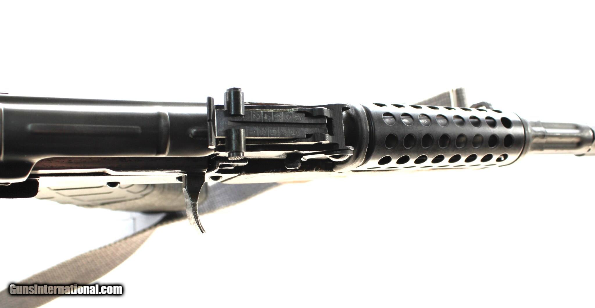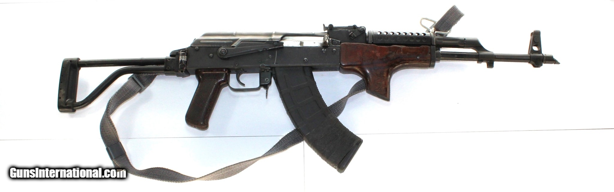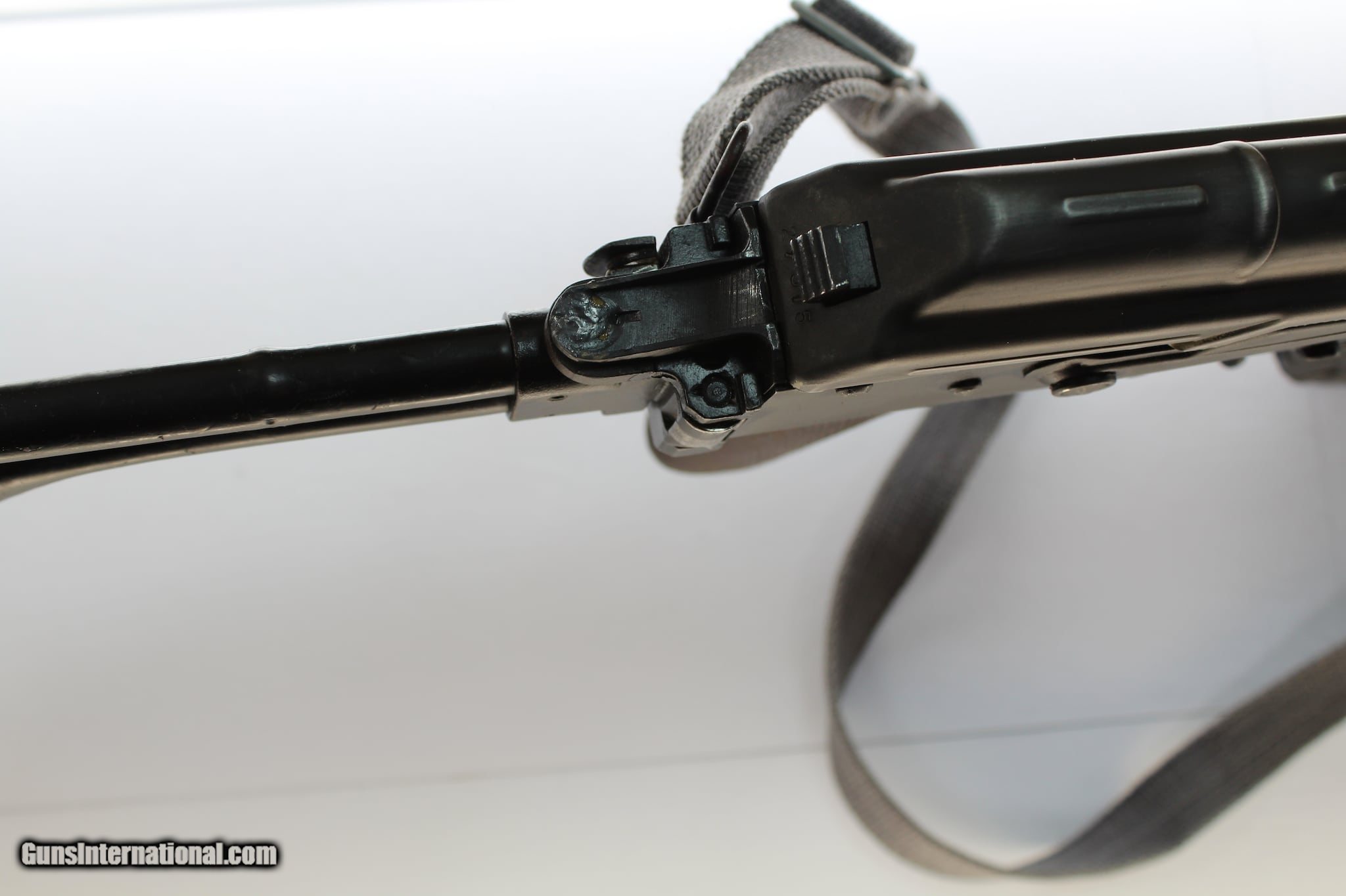 Description: Guns Listing ID: 1096031 SER #1977ZB1121, 7.62x39 mm, 16 1/4\" barrel with a bright good bore. The metal surfaces retain 89% arsenal applied parkerized finish, loss due to light edge and contact wear along with some marks. The welded on folding buttstock, pistol grip and forearm remain good with the worn been there done that blemishes, cut dong and cheese grader top hand guard. The right side of the receiver is import marked by CAI, below \"MADE BY CN ROMARM SA/CUGIR / ROMANIA\" while the left side is marked with model, caliber and serial number. Rifle features a welded on slant break, standard sights, one 30 round P-Mag. An interesting WASR 10/63 rifle built on a 1977 dated trunnion with a great worn look. SOLD Manufacturer: CENTURY ARMS Model: GP/WASR 10/63 Caliber Info: 7.62X39MM Condition: Used - Non-Certified Barrels: 16 BARREL Finish: BLACK |