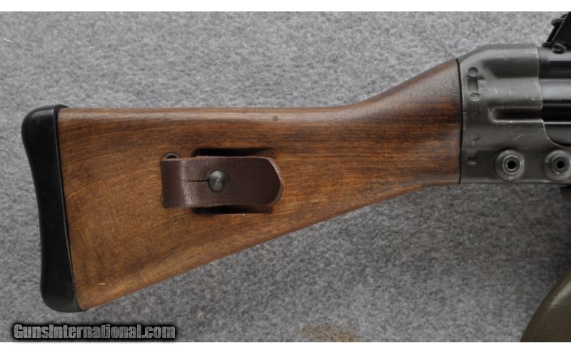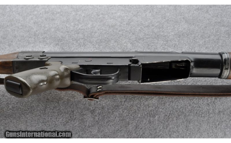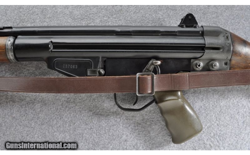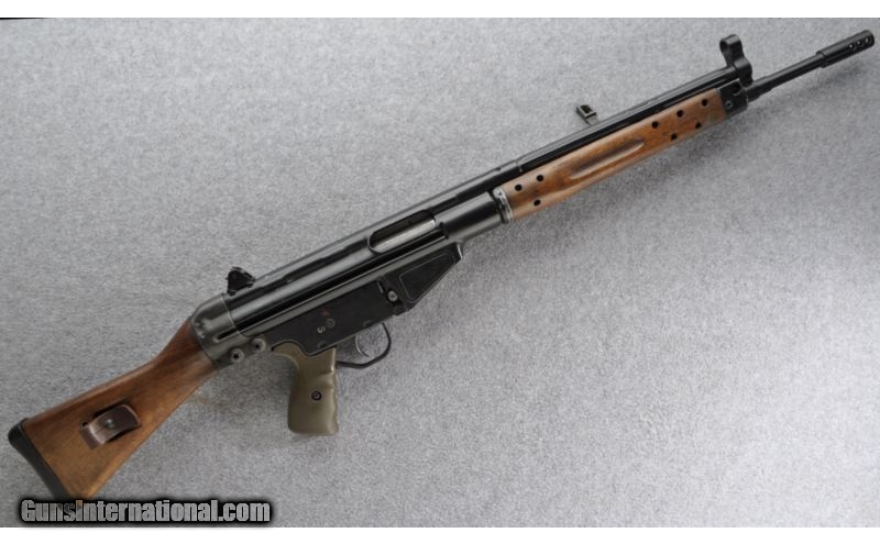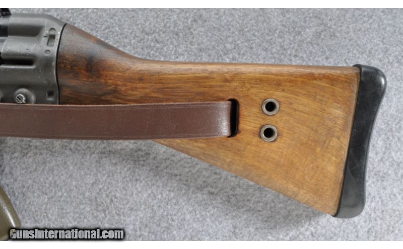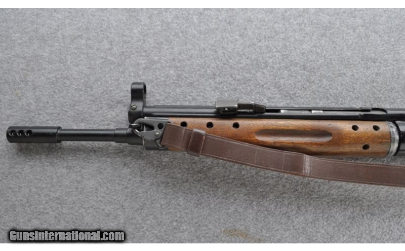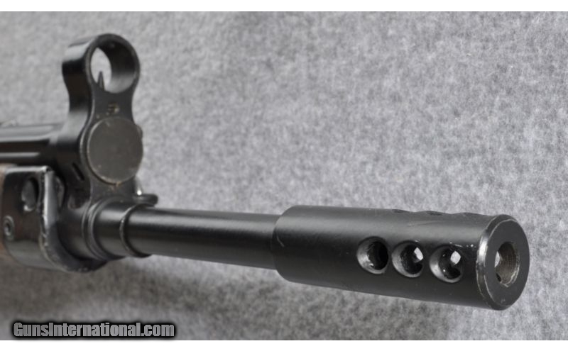 Description: SOLD Caliber Info: .308 Winchester (7.62X51mm NATO) Metal Condition: Shows moderate blue wear at carry points, muzzle, operating rod, magazine well and trigger guard Wood Condition: Butt stock is dark near the receiver from oil seepage, there is a hairline crack in the fore end right side near the front cap Bore Condition: Bore is bright and sharp Barrels: 18" Not including muzzle brake Stock: Uncheckered Military style straight grip with separate vented fore end Stock Dimensions: 14.5" LOP Fore End: Uncheckered wood with finger grooves and venting holes Butt Pad: Hard Rubber Weight: 9 lbs 6 oz as pictured Sights: Hooded Blade Front, Flip-up four blade aperture rear Extras: Leather sling Item Location: Grand Junction, CO |