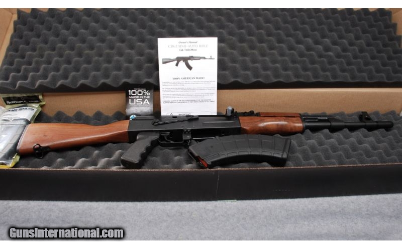 Description: SOLD Caliber Info: 7.62X39 Metal Condition: NIB Wood Condition: NIB Bore Condition: NIB Barrels: 16 Stock: Fixed hardwood. Stock Dimensions: 13" LOP Fore End: Two piece hardwood. Weight: 8 Lbs. 7 Oz. Sights: Notched rear. Protected adjustable front sight. Extras: Box, papers, two 30 round magazines. Item Location: Billings, MT |