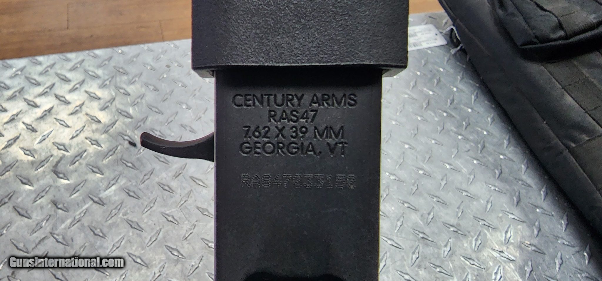 Description: Guns Listing ID: 614458 This rifle is in excellent condition. Comes just the way it‚‚s seen in the pictures. One magazine, no case. Nothing else included SOLD Manufacturer: CENTURY ARMS Model: RAS 47 Caliber Info: 7.62 X 39 MM Condition: Used - Non-Certified Barrels: 16.5 BARREL Finish: BLUE |