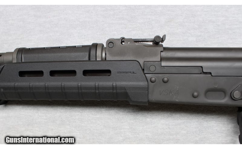 Description: Century Arms VSKA chambered in 7.62 x 39. This rifle has is built using S7 tool steel in critical components to withstand heavy duty action. The VSKA rifle features an all-new bolt carrier, front trunnion, and feed ramp that are specially heat treated for maximum durability. Additionally, the VSKA features a carburized 4140 steel bolt, a chrome-moly 4150 barrel, and sports the RAK-1 Enhanced Trigger Group for an impressive trigger pull. It has a manganese-phosphate finish and has a MagPul handgrip and stock. It includes one mag. 7.62x39mm SOLD Metal Condition: Excellent Bore Condition: Bright Barrels: 16 1/4 Inches Triggers: Factory Stock Dimensions: LOP 12 3/4 Inches Fore End: Poly Magpul hand Guard Butt Pad: Rubber pad Sights: Rear sight distance adjustable Item Location: La Vista, NE |