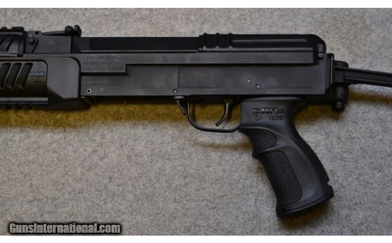 Description: Century Arms, Model VZ 2008 Sporter Semi-Auto Rifle, 7.62X39mm with removable thirty round magazine SOLD Manufacturer: 2015 Caliber Info: 7.62X39mm Metal Condition: Very good with light handling and wear marks Wood Condition: Very good with light handling marks Bore Condition: Like new bright shiny rifling with very light wear marks Barrels: 16 1/2 inch Triggers: Single action Stock: Black steel folding with Fab Defense SA VZ.58 black polymer textured pistol grip Stock Dimensions: LOP - 12 3/4 inch Fore End: Fab Defense SAD-58 black polymer quad picatinny rail with black polymer grip Butt Pad: Integrated black steel butt plate Weight: 7 pound 1 ounce Sights: Fully adjustable ranging square groove rear sight and shielded square post front sight Extras: With box and no extras Item Location: Hammond, IN |