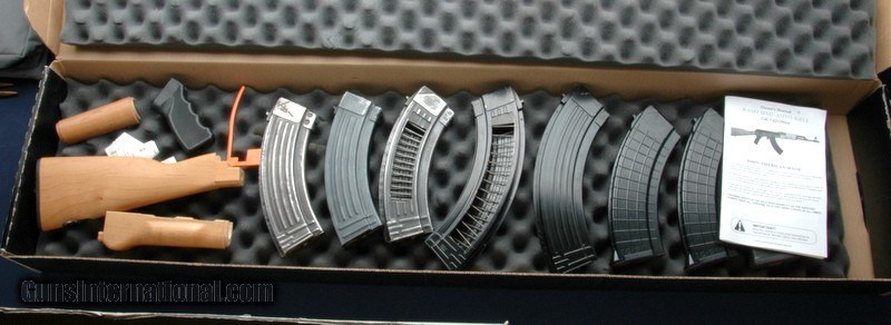Description: This one is in great shape, has a mint bright bore, excellent metal, original blonde wood stock in the box has been replaced with a used military East Bloc stock and furniture. The manual is there, as well as the 8 magazines shown in the last picture. Nice AK here. We are a brick and mortar, on Mountain time. Call us. $65 shipping to the lower 48, 3% surcharge for using a CC. If you choose to pay with a personal check, we will hold the item for up to 10 days to make sure that it clears. Please expedite such pymts as we will hold an item on your word for 5 days. SOLD Rifle Caliber: 7.62x39mm |