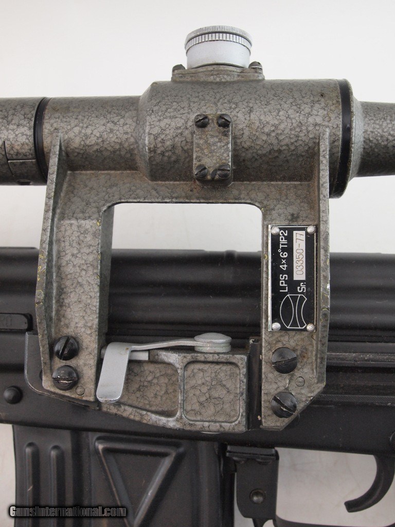 Description: ROMARN PSL54C 7.62X54R, Imported by CAI, 26" bbl, shiny bore, good rifling, flash hider, black finish, LPS 4X6 TIP2 scope with quick release mount, adjustable rear notch sight, post in wings front sight, laminated thumbhole grip stock, hardwood forearm - cover, leather sling, metal butt plate, and one magazine. Add 3% for Credit Card Shipping $40.00 SOLD |