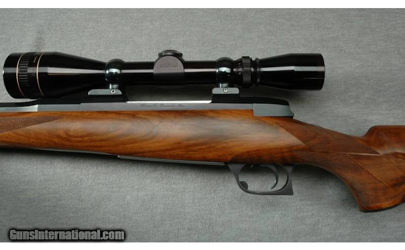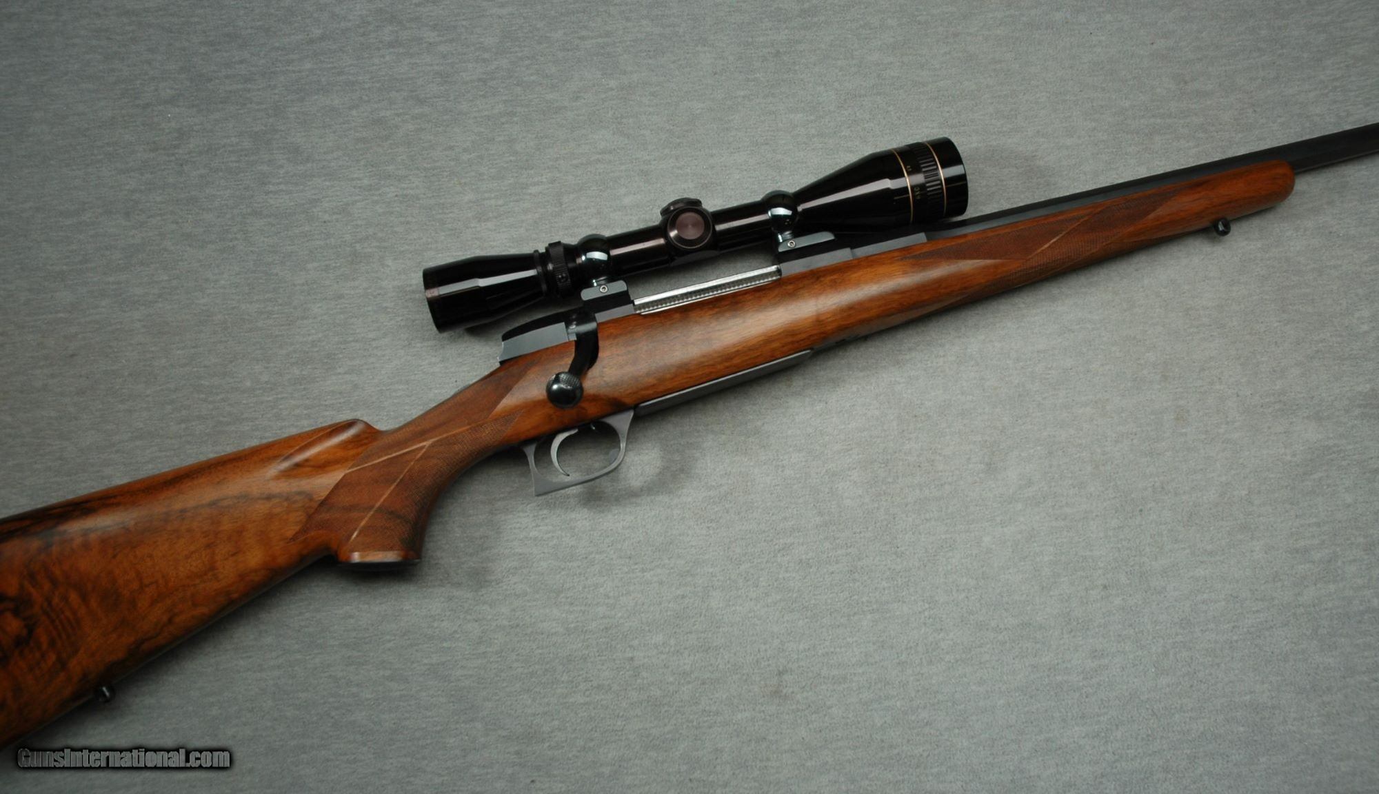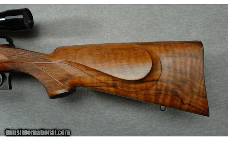 Description: Champlin Arms Custom Rifle chambered in .300 Weatherby Magnum. This is a unique rifle built on a Champlin Arms custom action. Champlin Arms began life back in 1966 and by the early seventies had established itself as one of the top bolt actions in existence. The 24" full octagon barrel features an integral quarter rib, sling swivel, and Leopold 3-9x40 Scope. It has an adjustable trigger. The bolt uses three guide rails to ensure the bolt travel is kept butter smooth and precise. It features a fully recessed bolt head with a blade type extractor and plunger ejector. The bolt has three front locking lugs giving the bolt a 60° lift. It has a beautiful Monte Carlo style Circassian Walnut stock with fine checkering. No box. .300 Weatherby Magnum Metal Condition: Excellent Wood Condition: Excellent Bore Condition: Bright Barrels: 24 1/2 Inches Triggers: Adjustable Stock Dimensions: LOP 13 1/2 Inches Fore End: Checkered walnut Butt Pad: Checkered steel Weight: 8 lbs 14 oz Sights: Leopold 3-9x40 Scope Item Location: La Vista, NE Price: $5,999.99 Contact Seller |