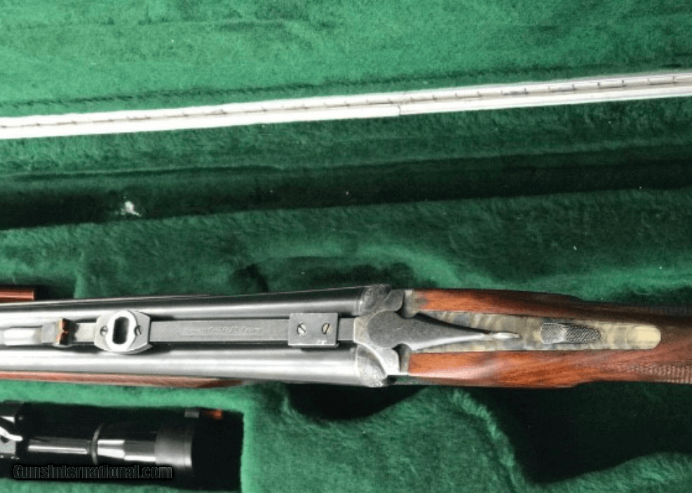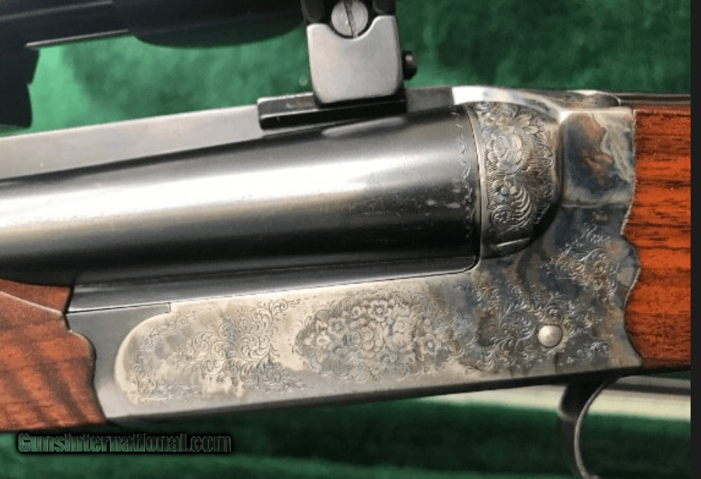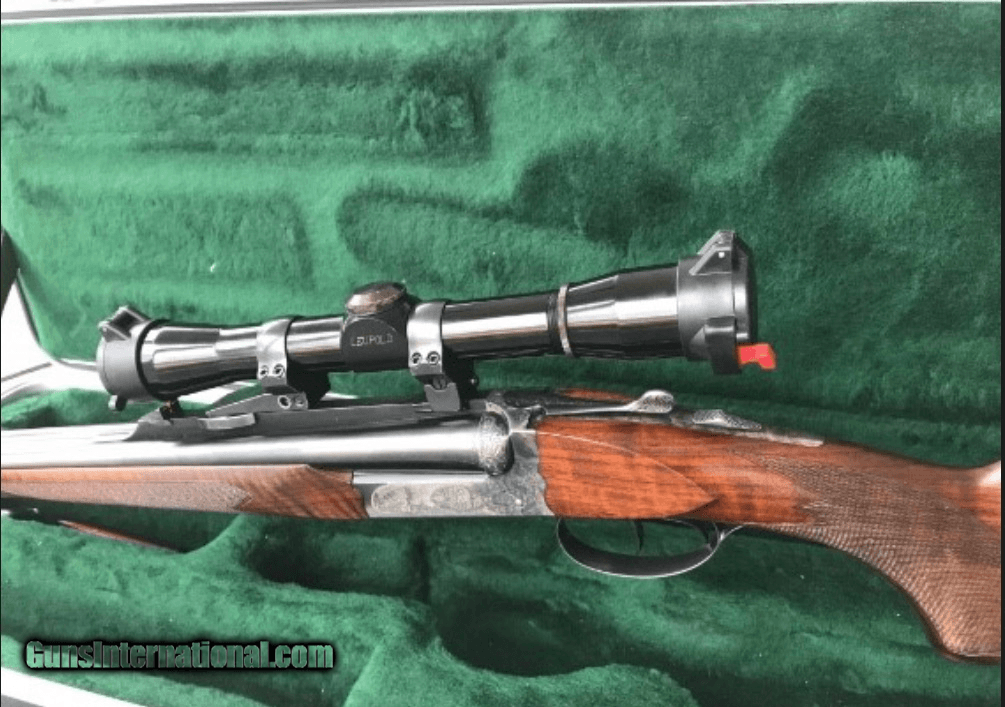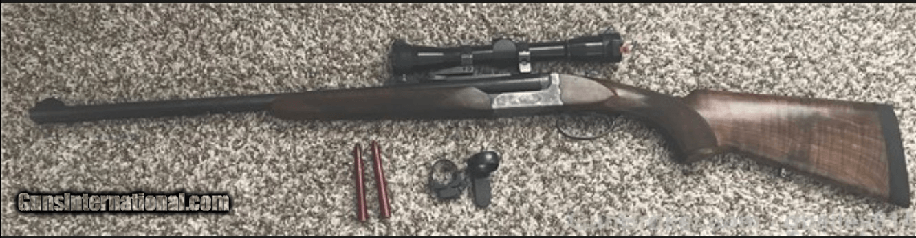 Description: Here is a Chapuis double rifle in the venerable 9.3x74R. This rifle is used, has been well hunted with, and has lost much of its original case hardening, yet was very well taken care of and remains a fantastic, solid, and honest rifle. Included is a set of snap caps, a Leupold scope, two sets of rings (1" and 30mm), 20 fired brass cases, 20 Norma Oryx loaded rounds (232 grain), and a SKB case. Scalloped and sculpted all-steel action with floral engraving. Coin colored action with double parallel underlugs. 23.5” barrels. AAA fancy walnut stock with hand-rubbed oil finished. Stock dimensions. Gun is equipped with double trigger, ejectors, luminescent rear sight, adjustable foresight. Includes factory hardcase. Gun is regulated with Norma Onyx 286grains (18.5grams) 50 meters. SOLD Manufacturer: Chapuis Model: Ugex Caliber Info: 9.3x74R Ejectors: Yes Condition: Good-used Barrels: 23.5 Barrel Type: SxS Triggers: Double Engraving: Floral |